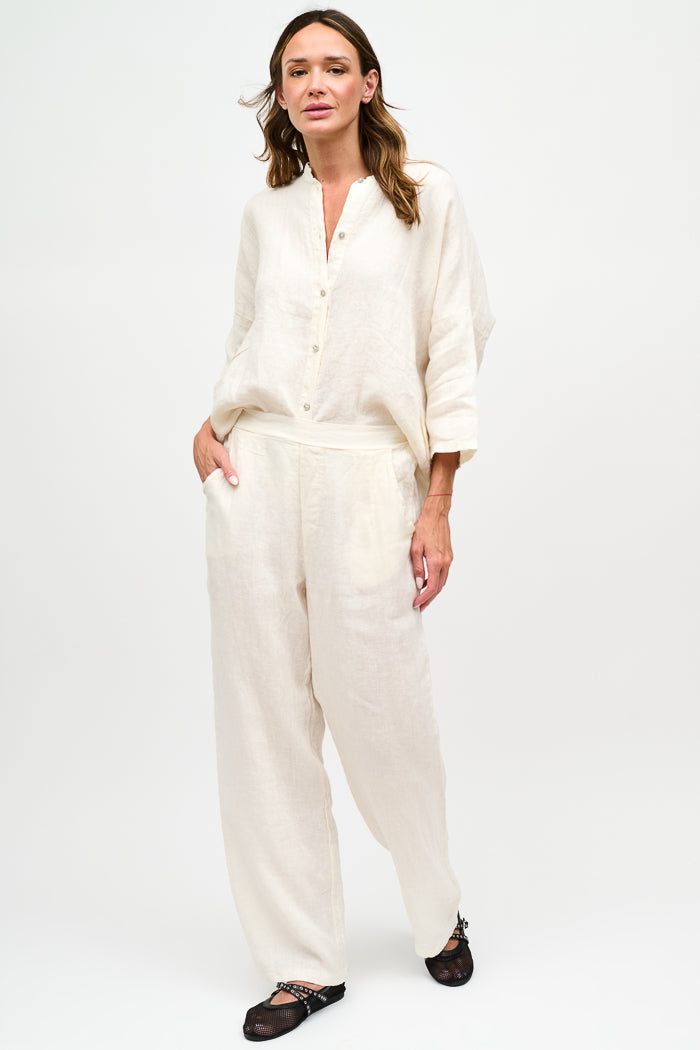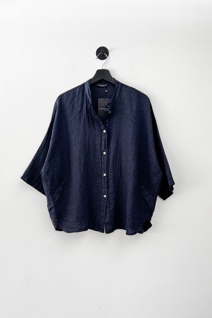 Blusa en lino italiano manga 3/4, cuello mao. Holgada, oversize.
