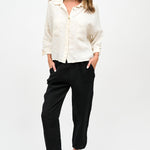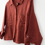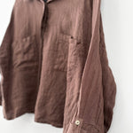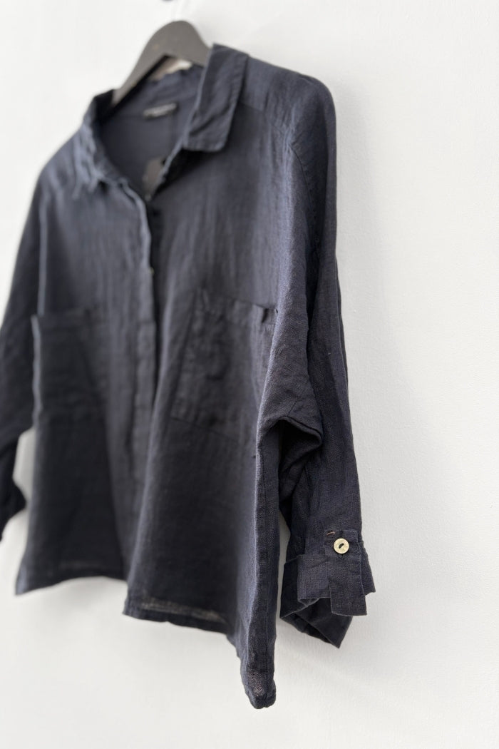 Blusa en lino italiano manga 3/4, con cuello camisero, botones y 2 bolsillos delanteros.