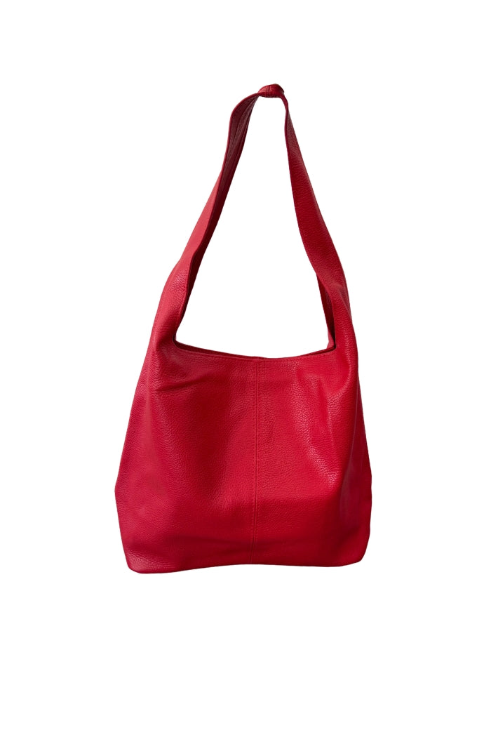 Cartera estilo totebag en cuero italiano, cierre superior.