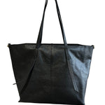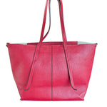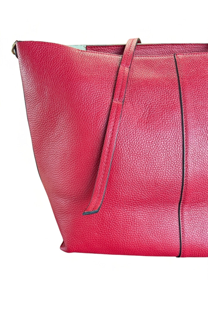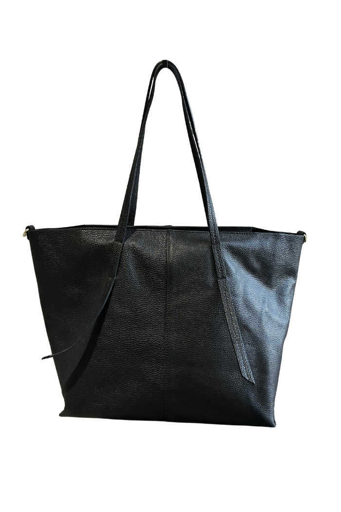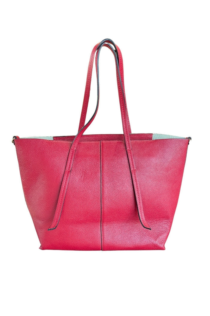 Cartera tipo totebag rectangular de cuero italiano, bolsillo interior y cierre superior.