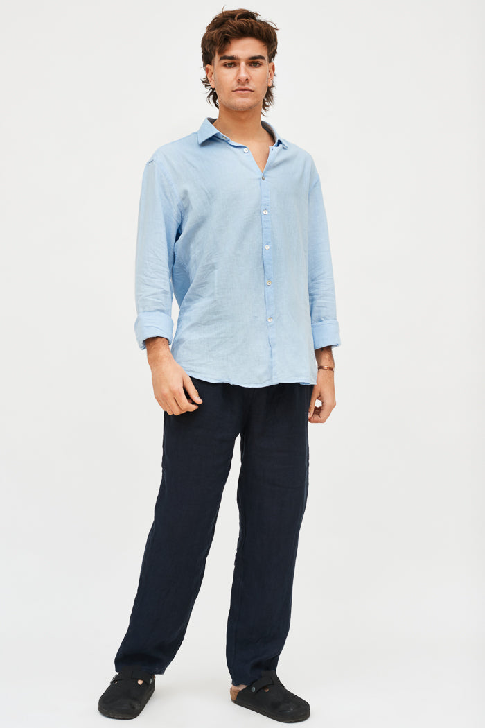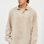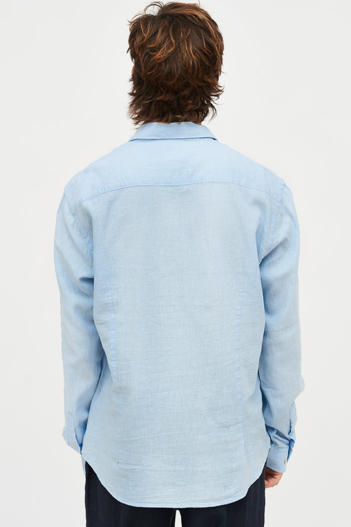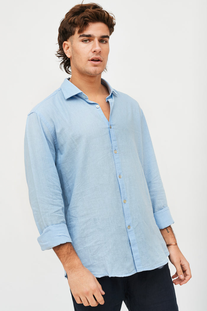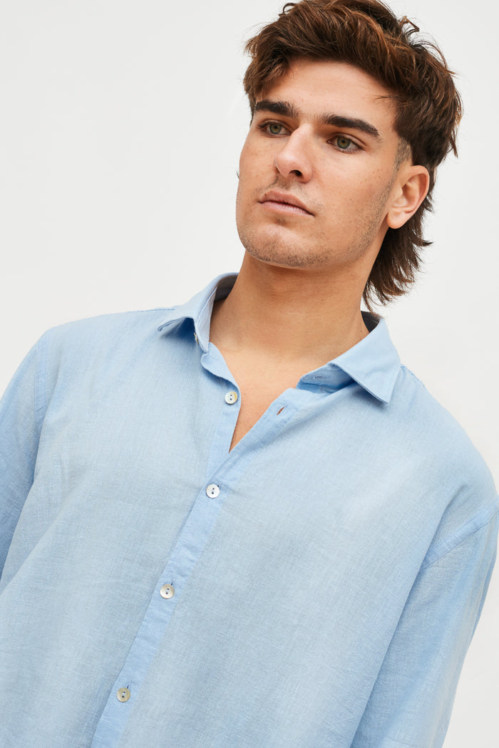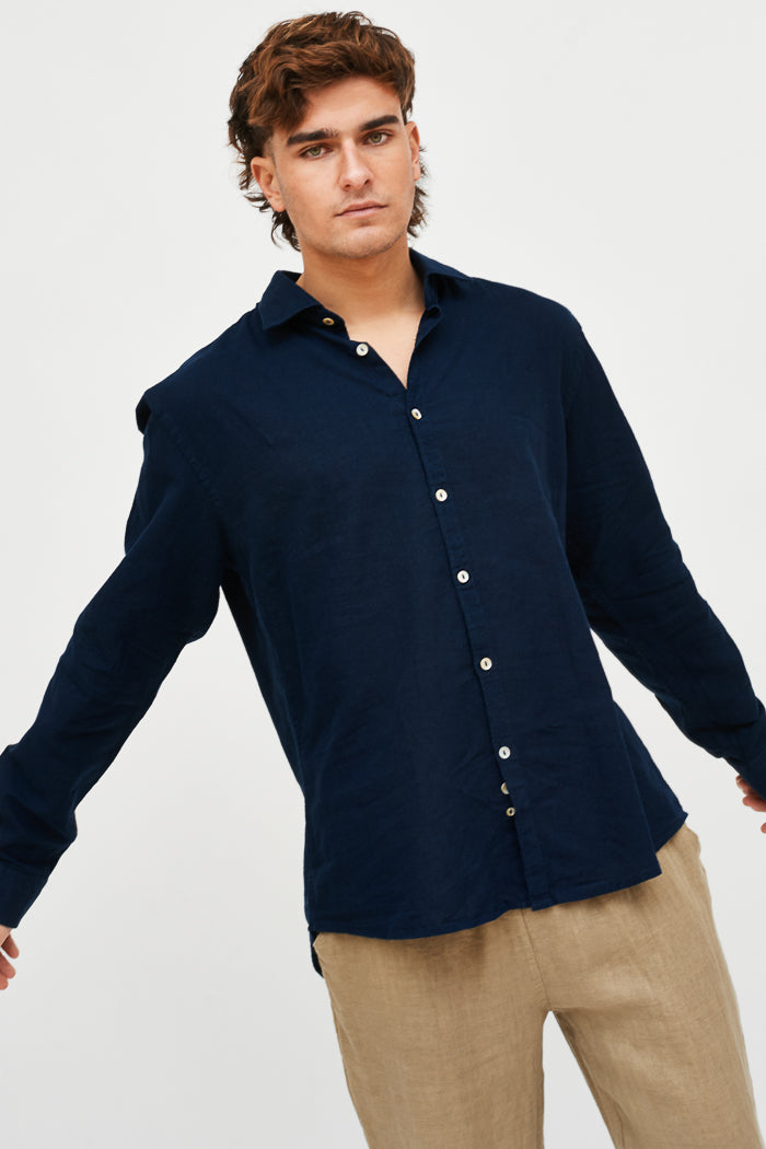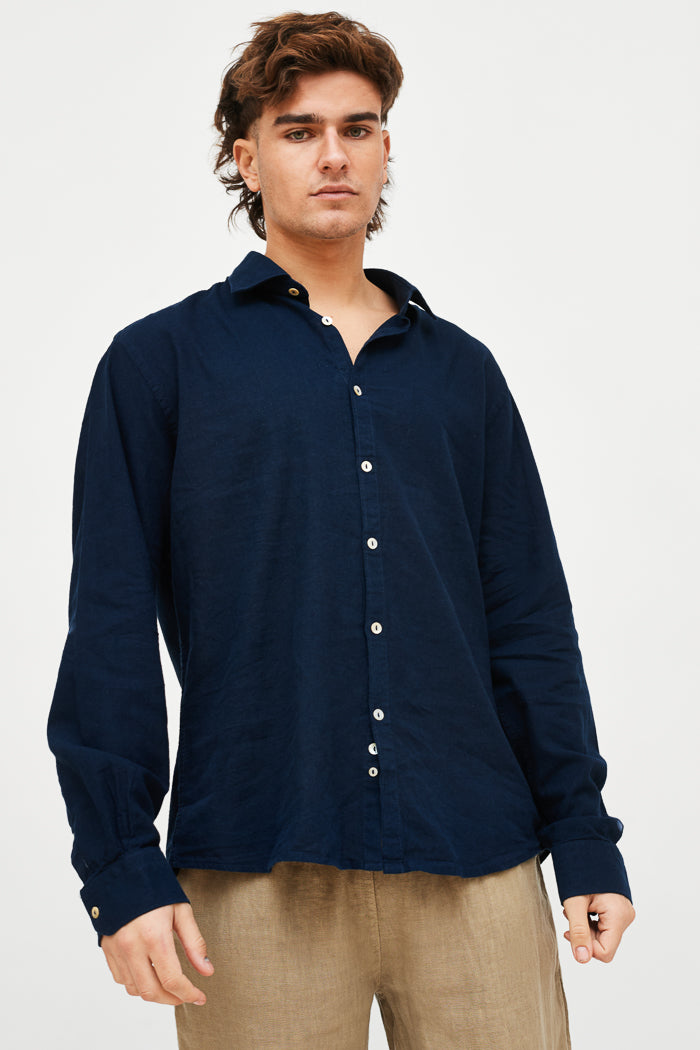 Camisa en lino y algodón italiano con cuello camisero y botones.