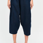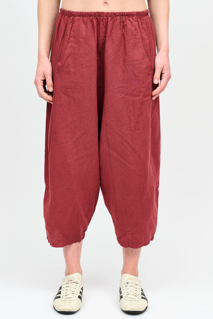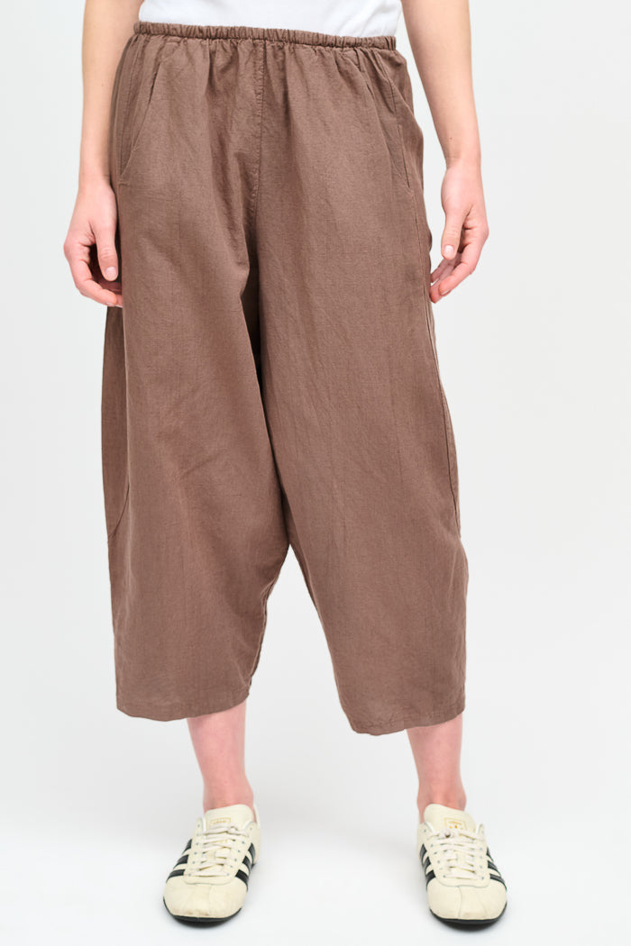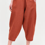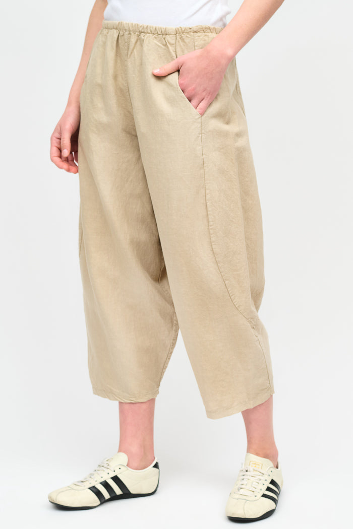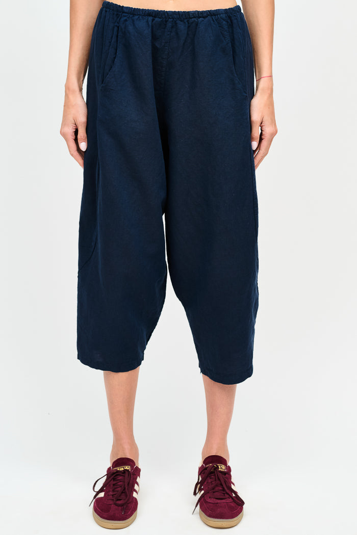 Pantalón tipo japones en lino y algodón italiano. Bolsillos laterales y cintura elasticada.