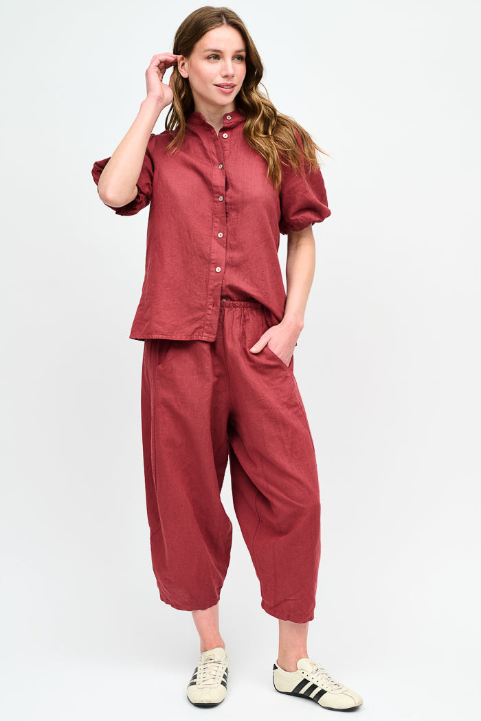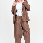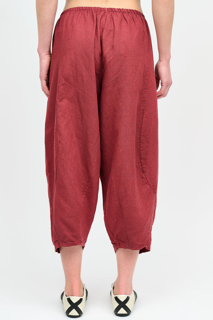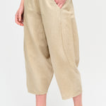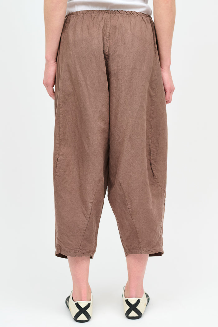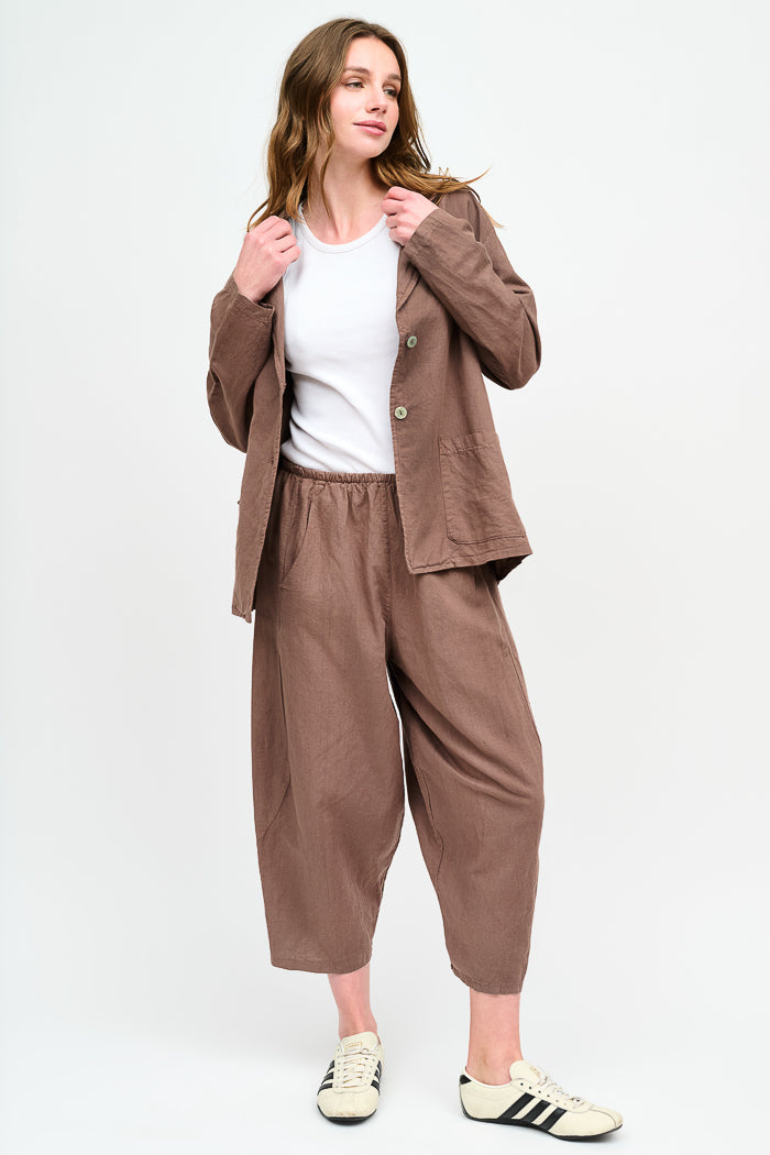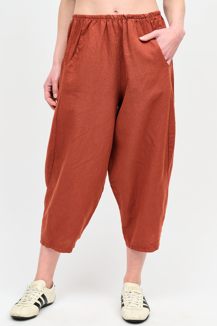 Pantalón tipo japones en lino y algodón italiano. Bolsillos laterales y cintura elasticada.