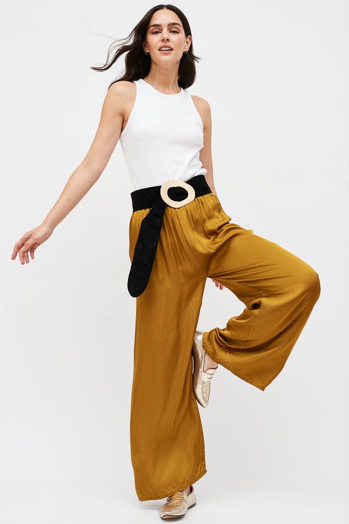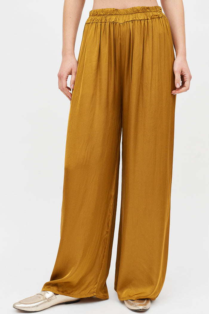Pantalón largo suelto de viscosa italiana, pretina elasticada.