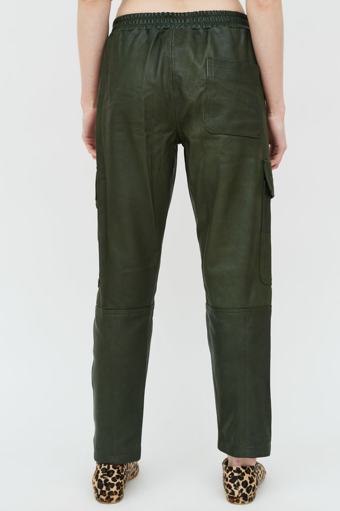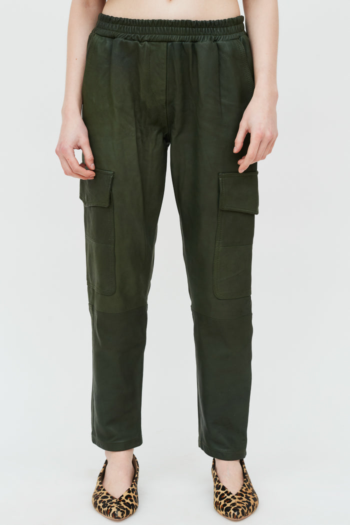 Pantalón cargo en cuero de oveja. Cintura elasticada y dos bolsillos a cada lado.