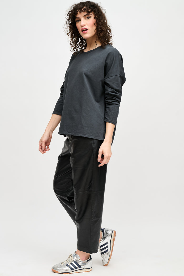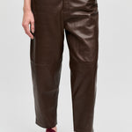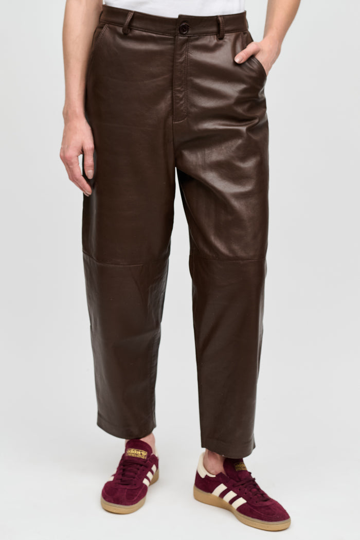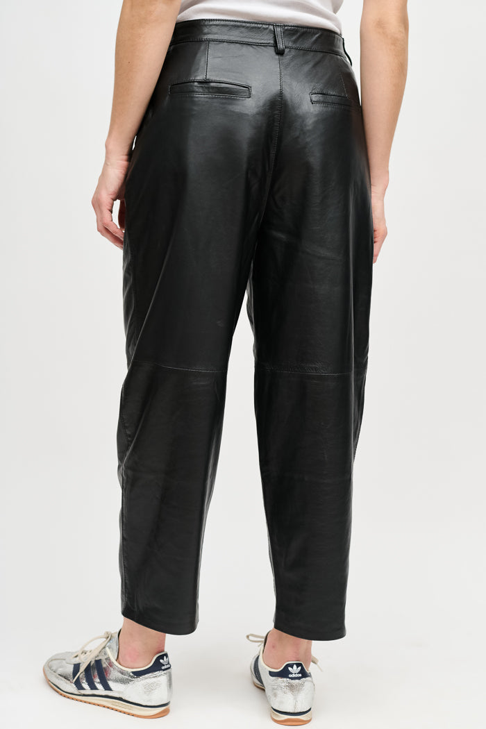 Pantalón en cuero italiano tipo balloon, con bolsillos laterales.
