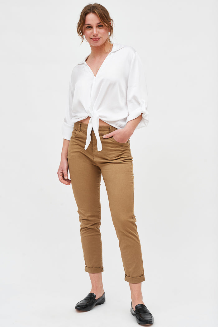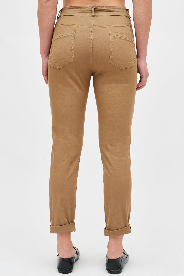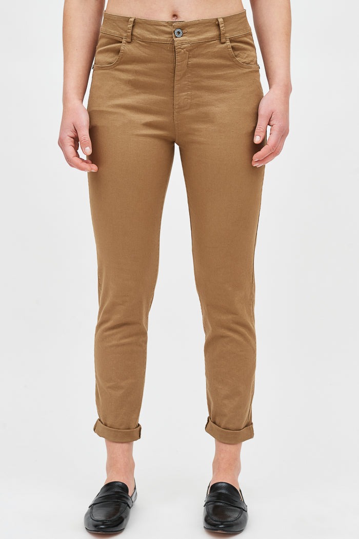 Pantalón italiano pitillo levemente elasticado, corte capri.