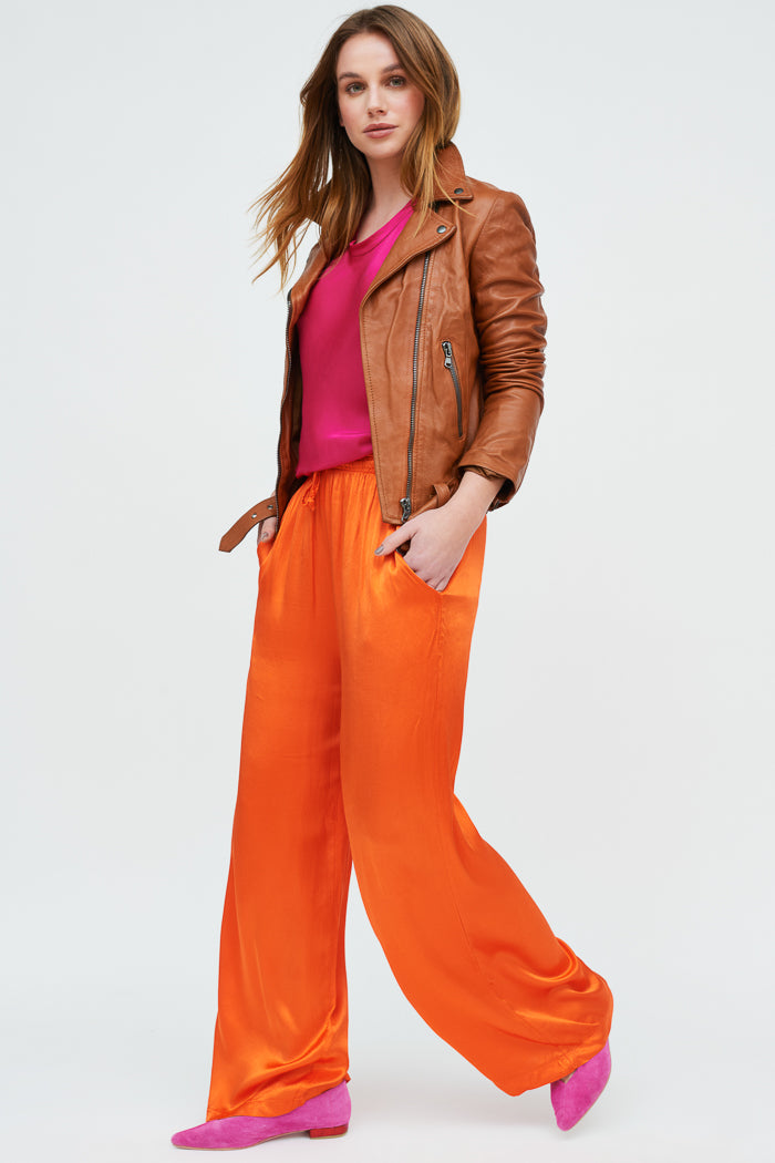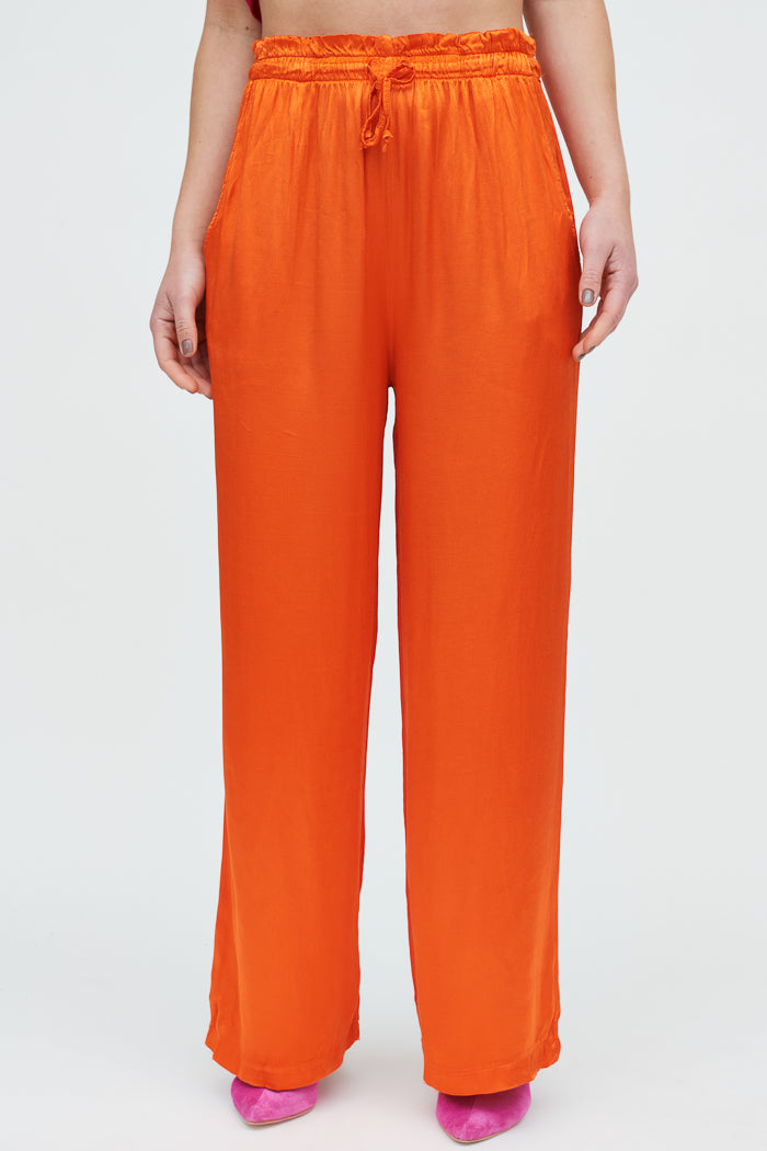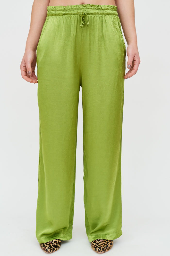 Pantalón largo de viscosa italiana, con bolsillos, pretina elasticada y amarra a la cintura.