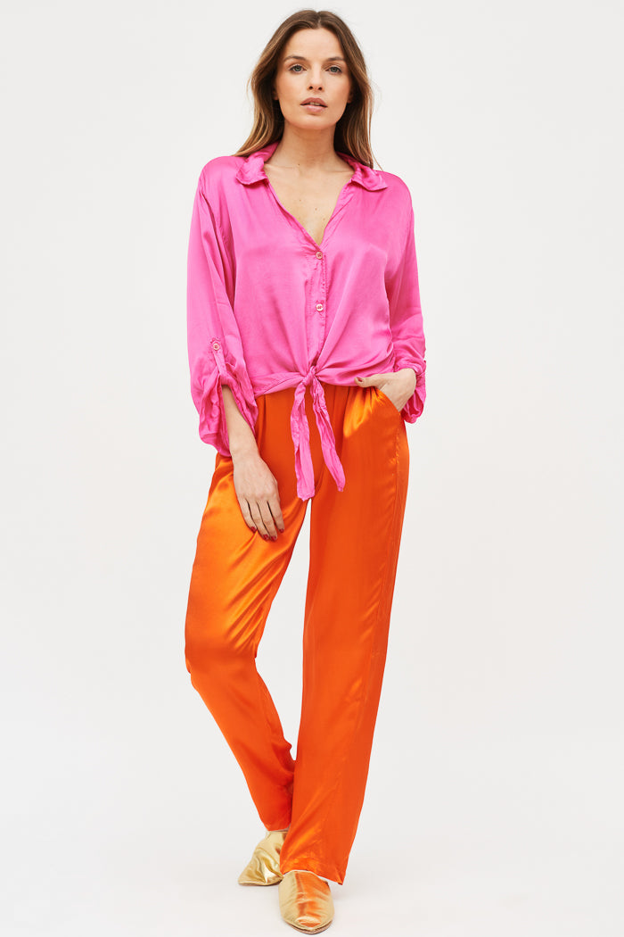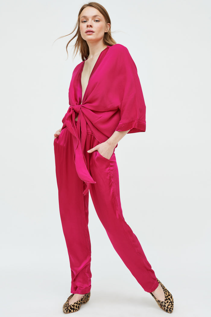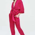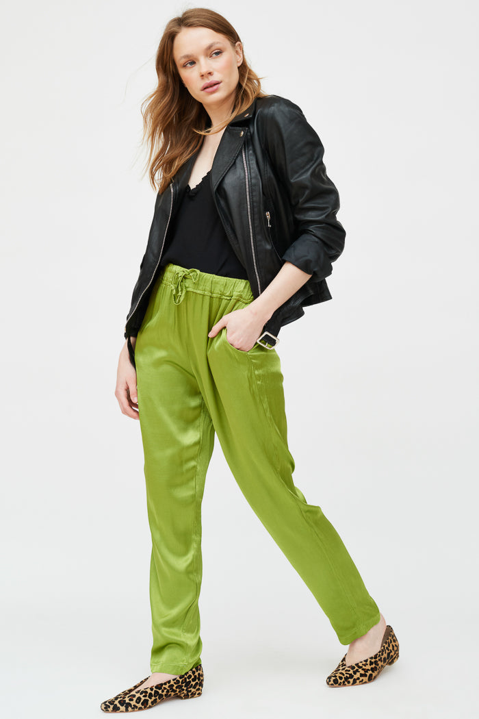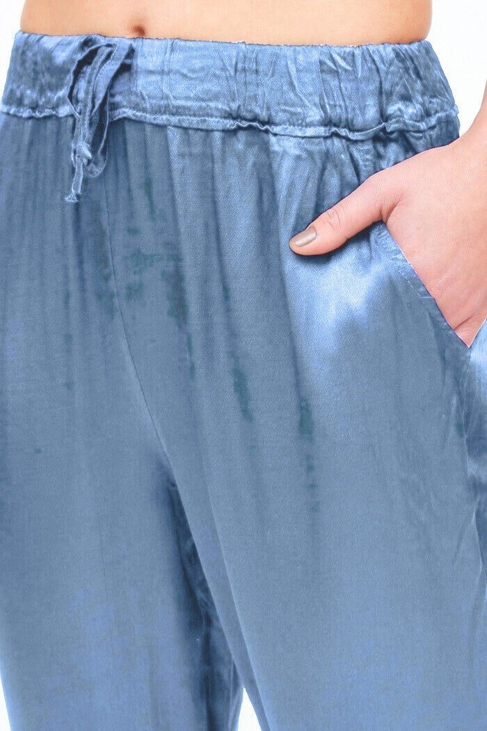 Pantalón largo de viscosa italiana, con bolsillos, pretina elasticada y amarra a la cintura.