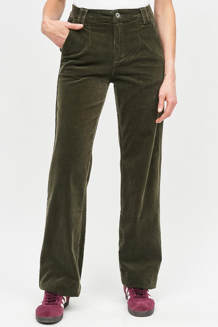 Pantalón de cotelé italiano, bolsillos delanteros. Corte recto.