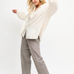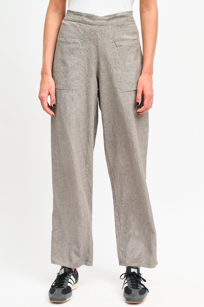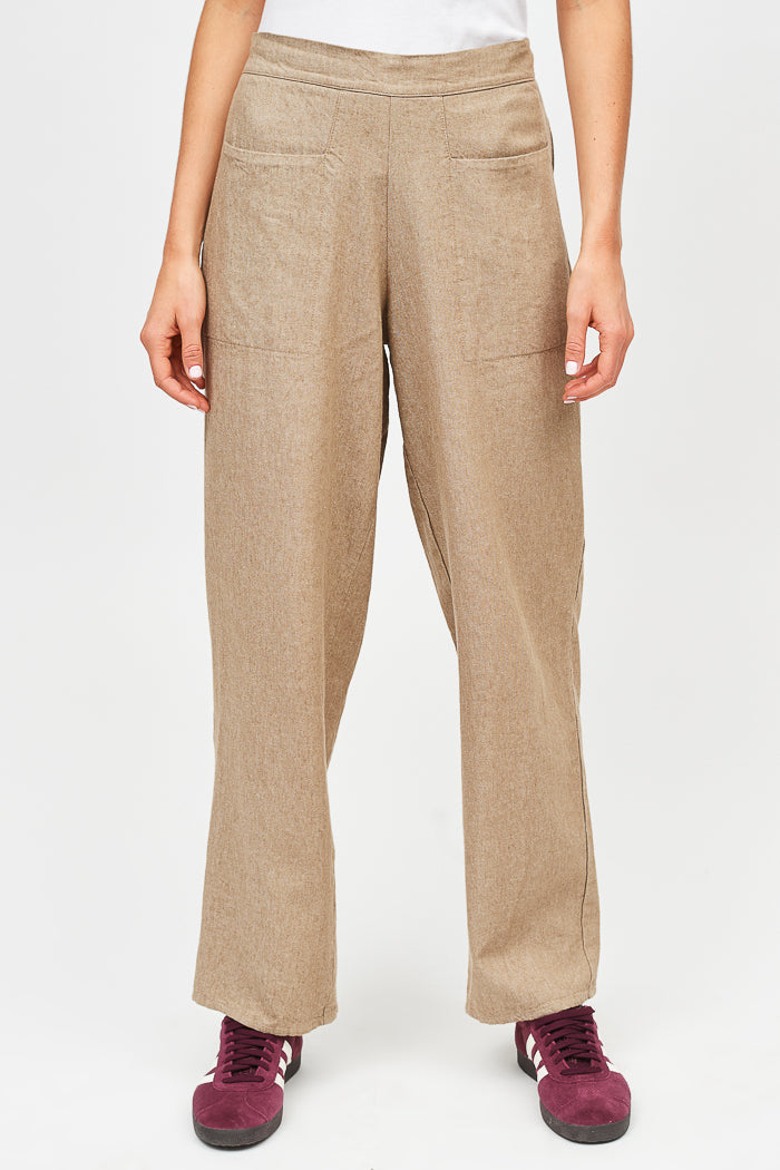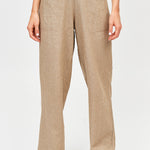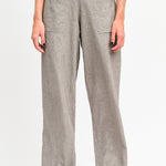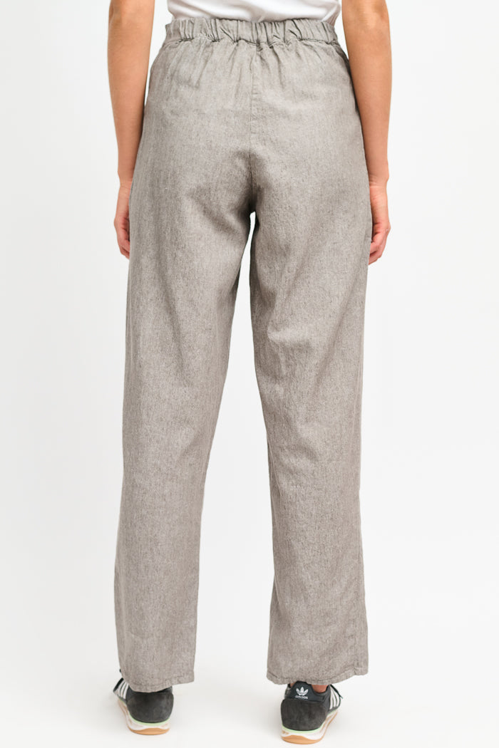 Pantalón en algodón italiano tiro medio, corte recto, cintura elasticada y bolsillos.