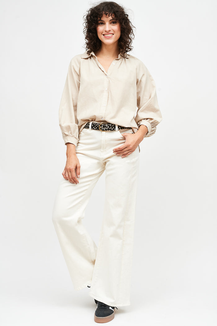 Pantalón de algodón italiano pierna ancha, levemente elasticado.