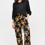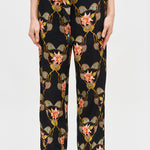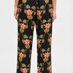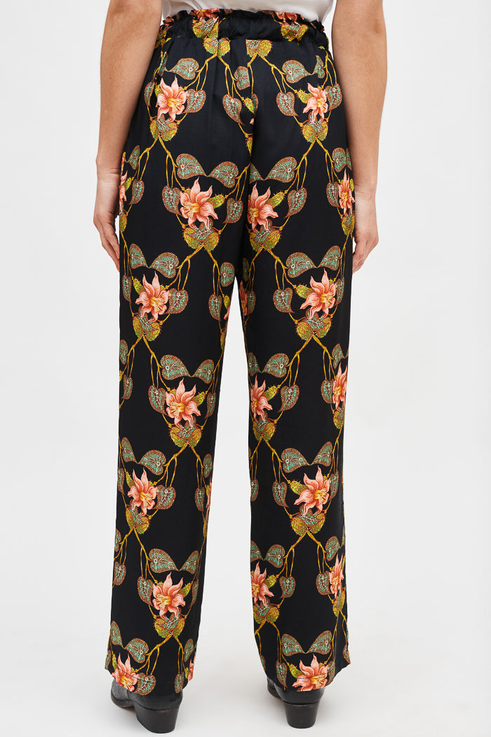 Pantalón largo suelto de viscosa italiana, pretina elasticada y amarras ajustables.