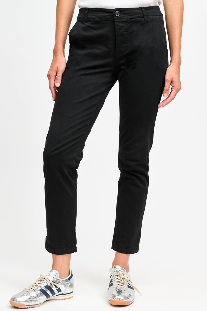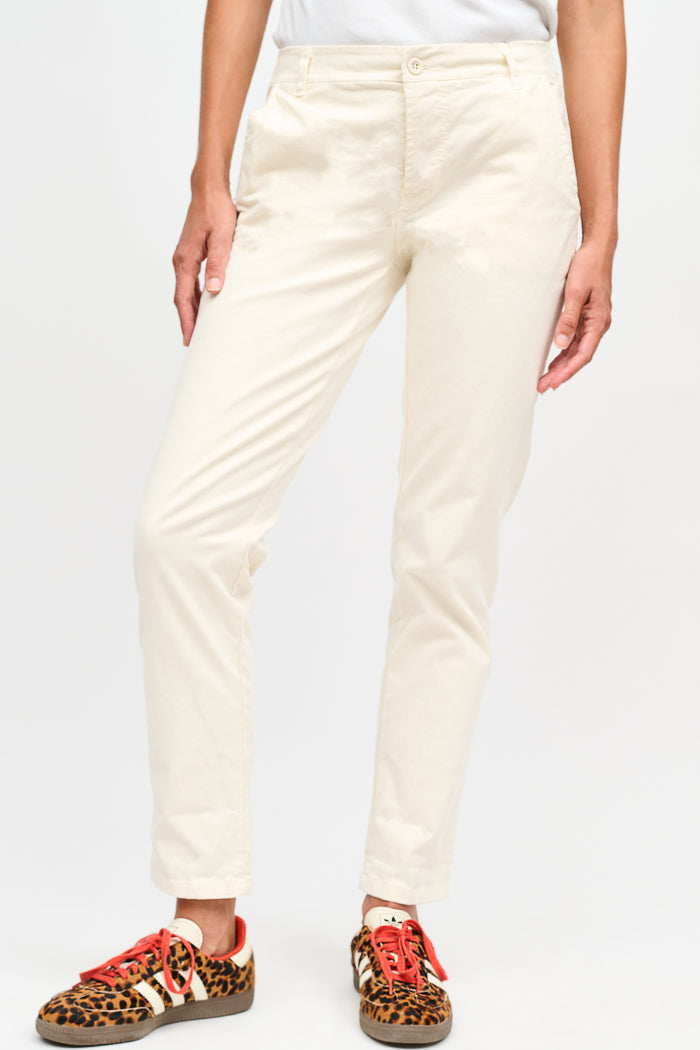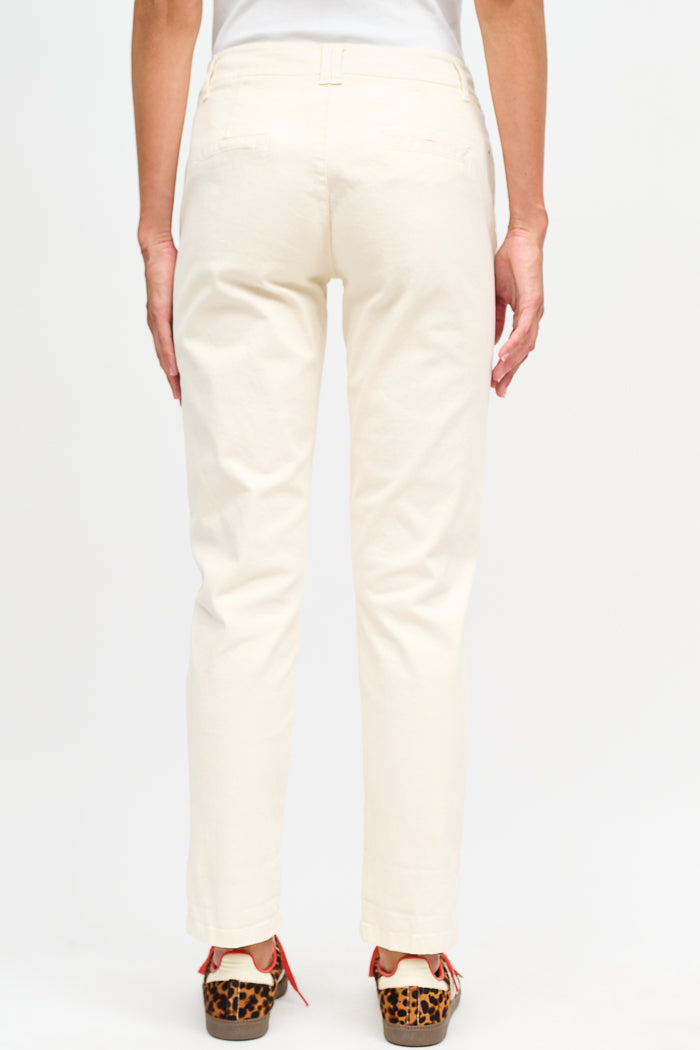 Pantalón de algodón italiano, bolsillos delanteros y traseros. Tiro medio.