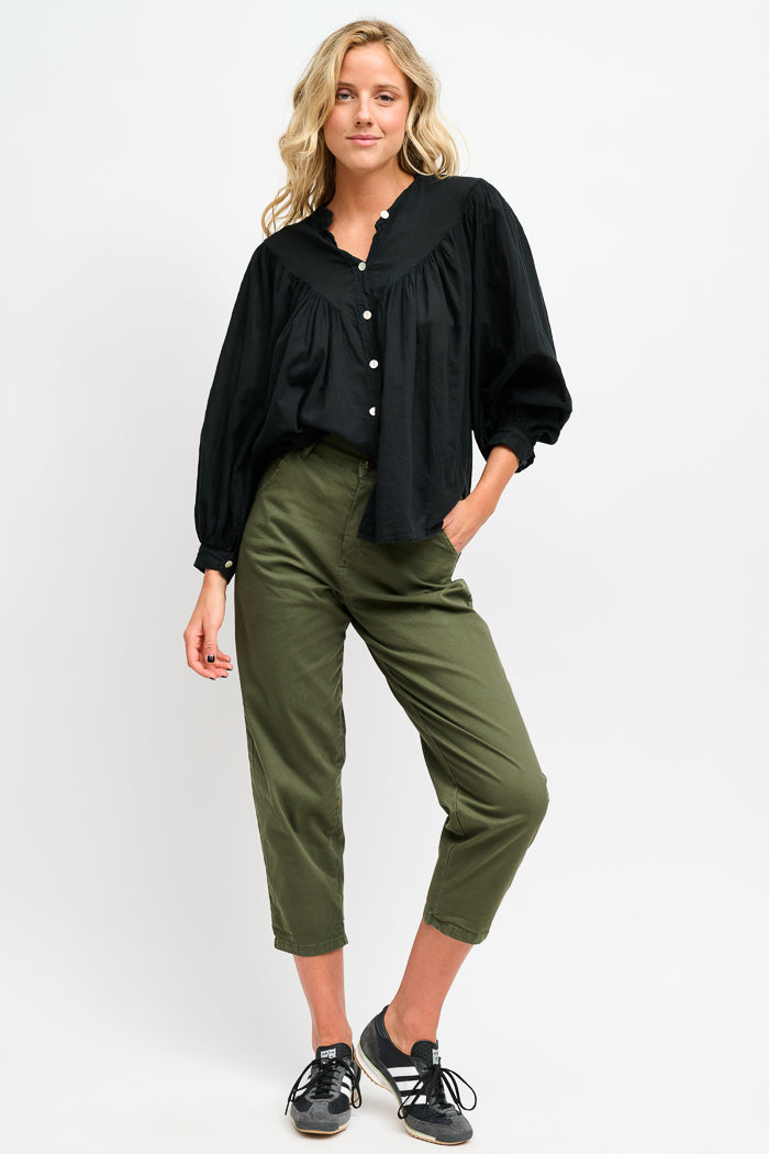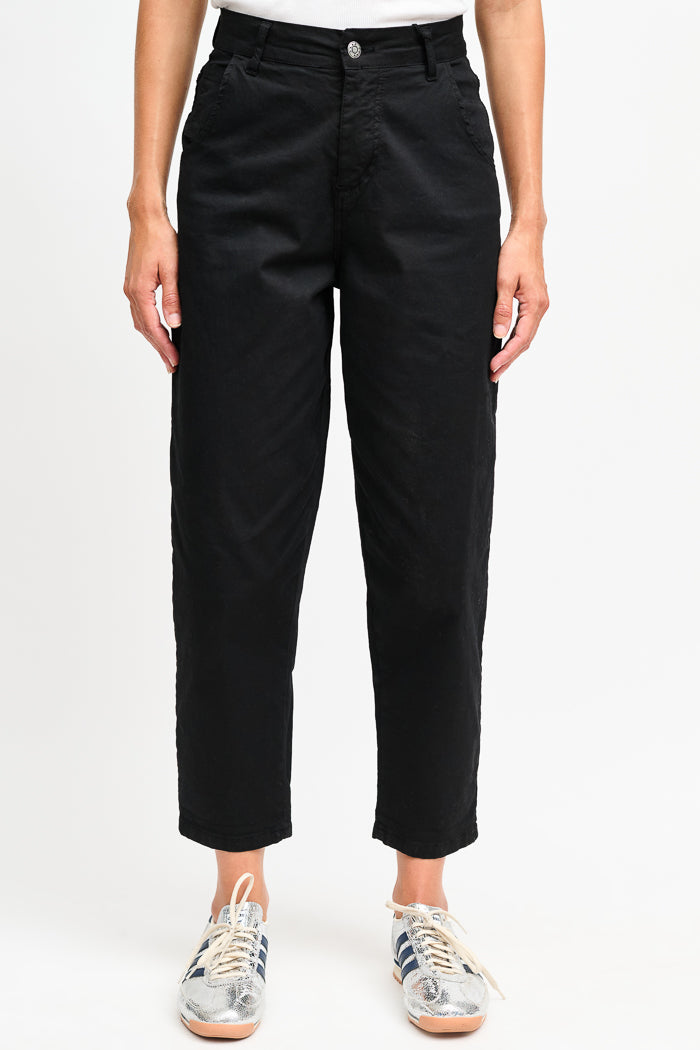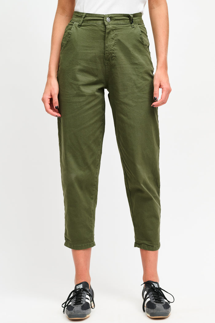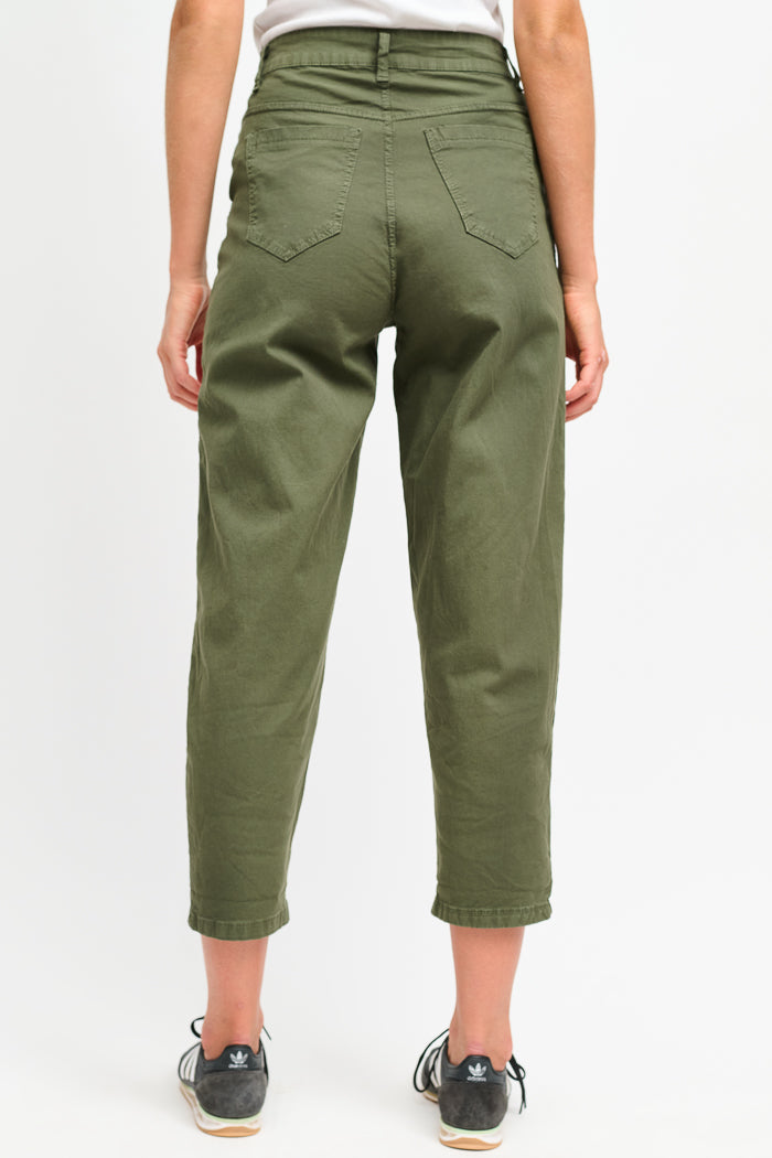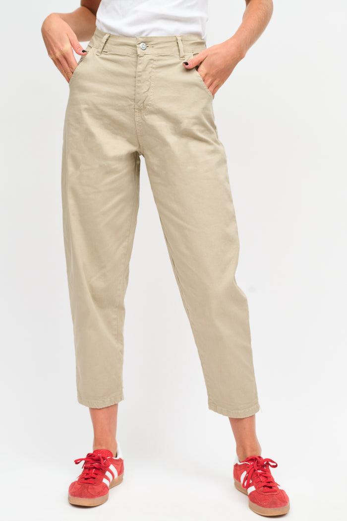 Pantalón en algodón italiano tiro alto, corte recto. Tipo Mom Jeans.