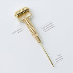 Es un rodillo giratorio cuyo cabezal está recubierto por puntas piramidales de acero que producen un masaje de reflexología y acupuntura facial, llegando a puntos más profundos de la piel, brindando un masaje intenso.