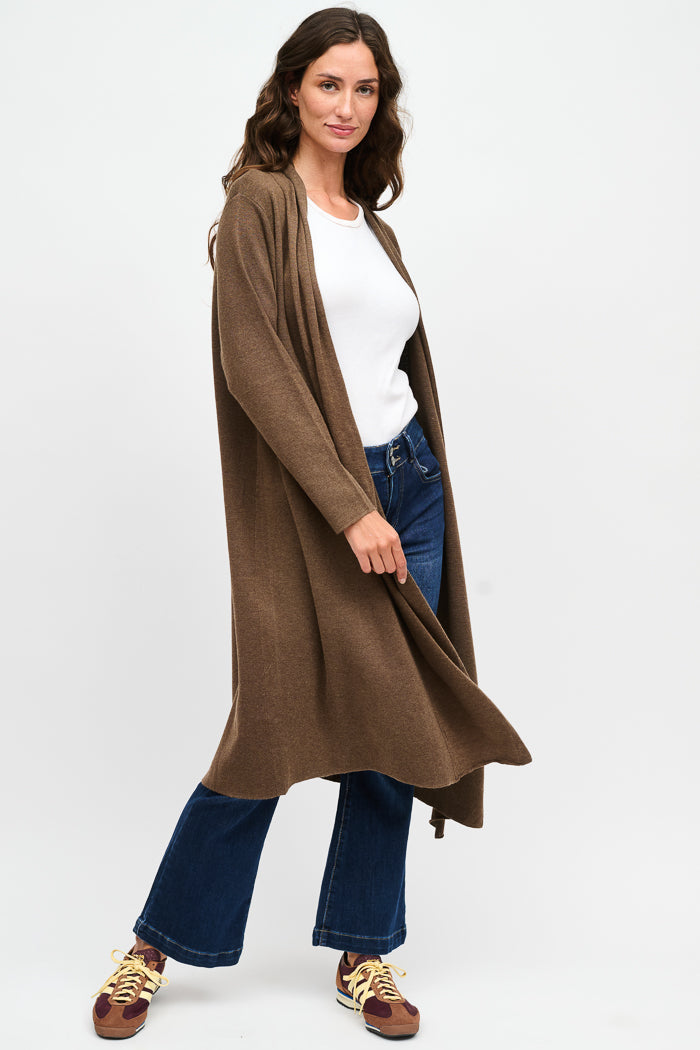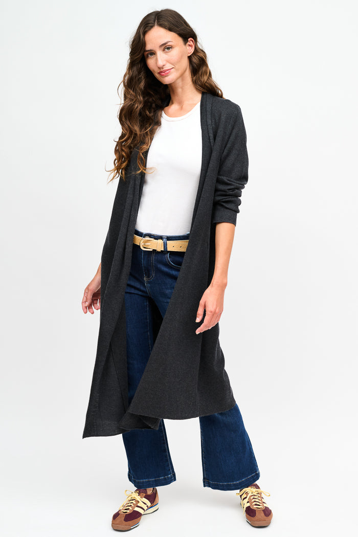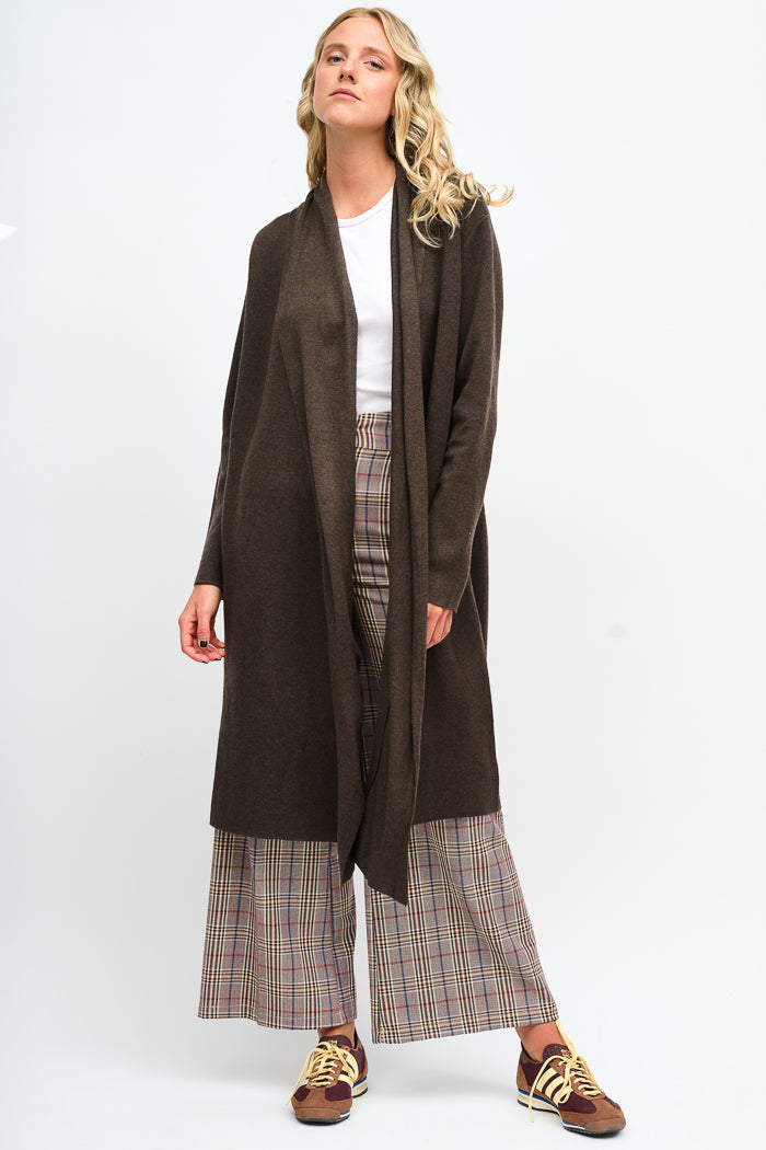 Chaleco largo tejido con manga larga.