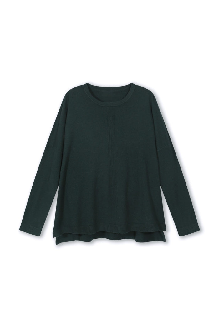 Sweater tejido en viscosa italiana cuello redondo y aberturas laterales