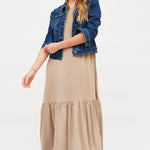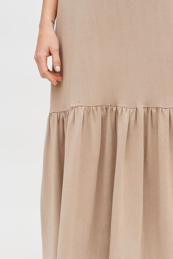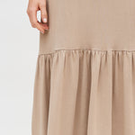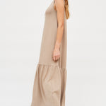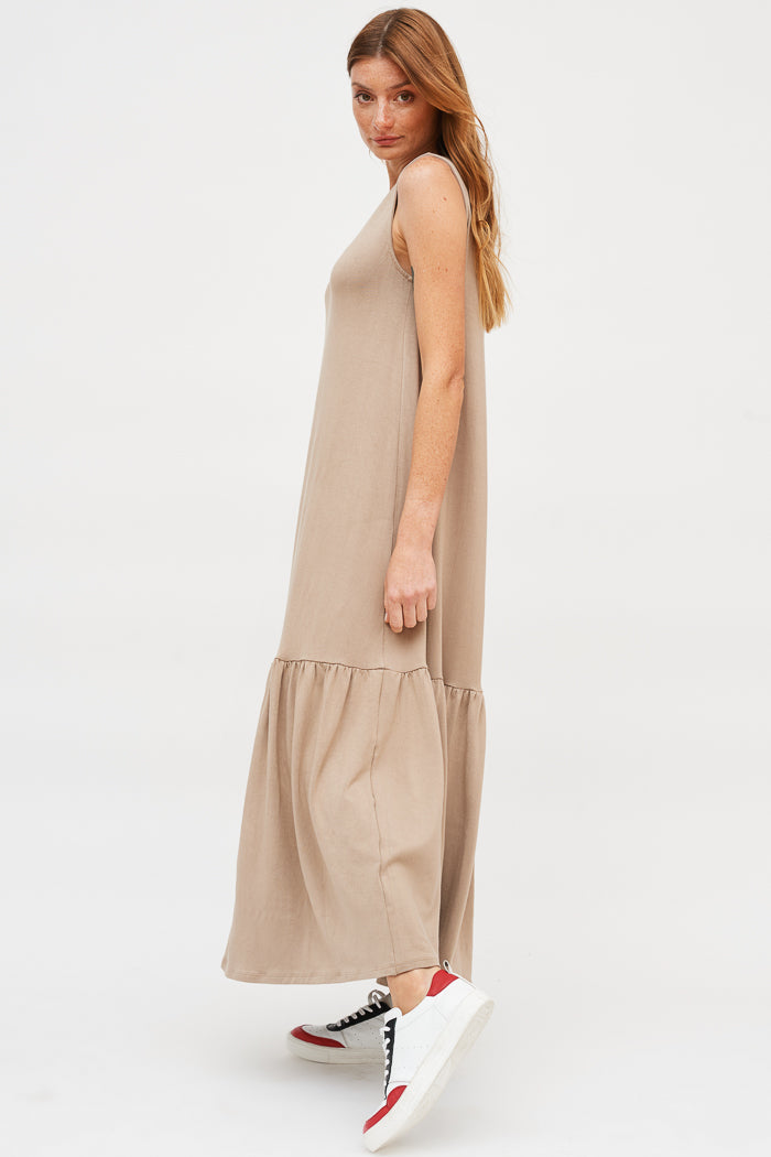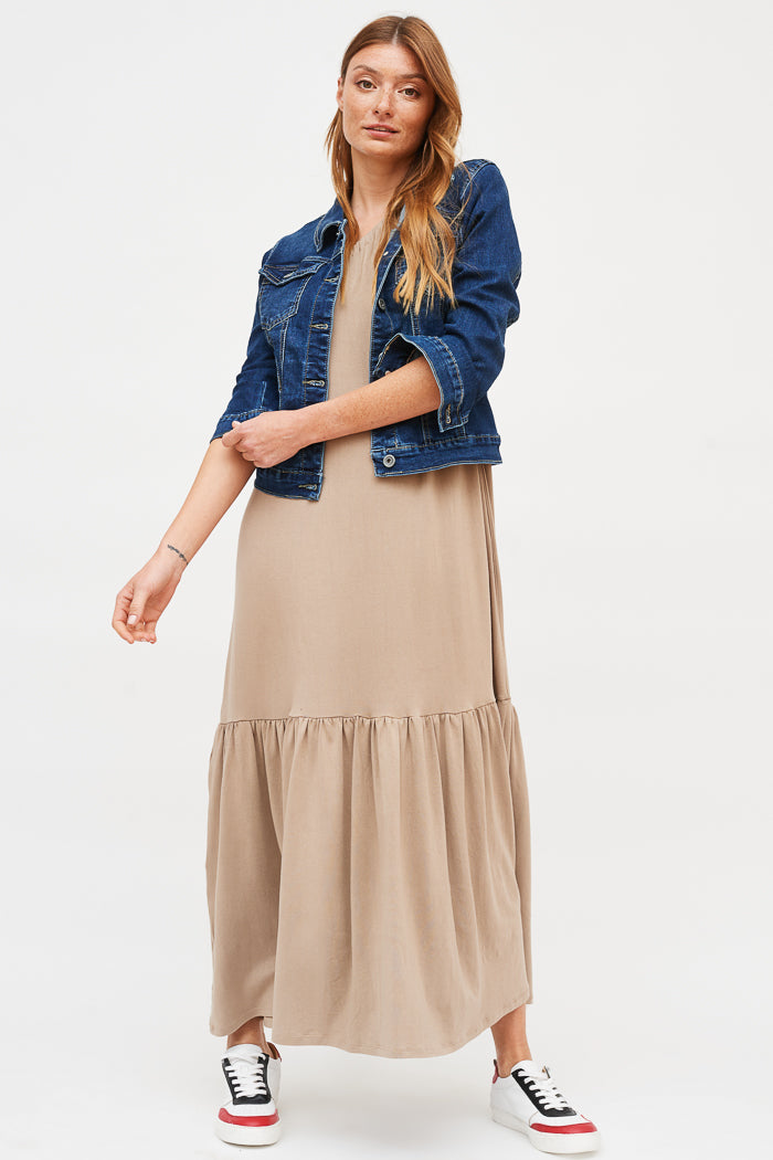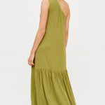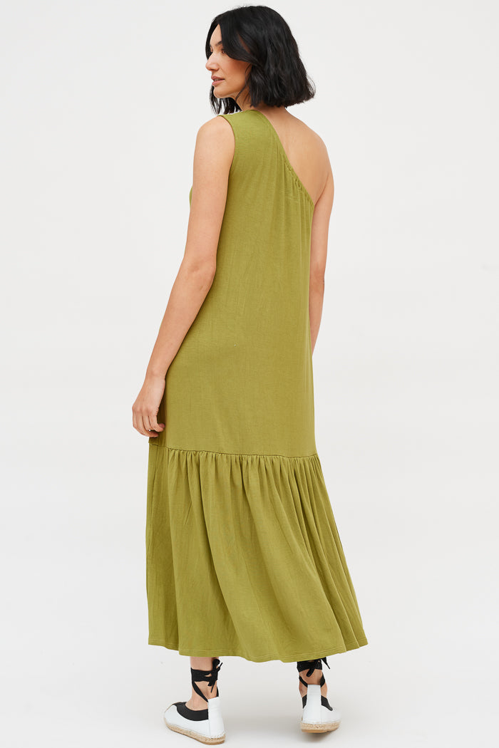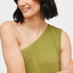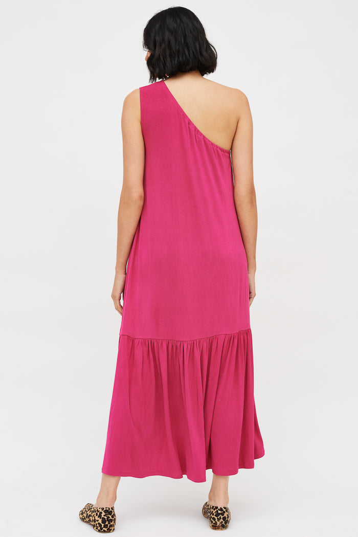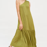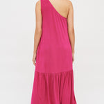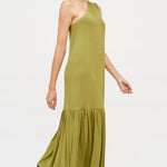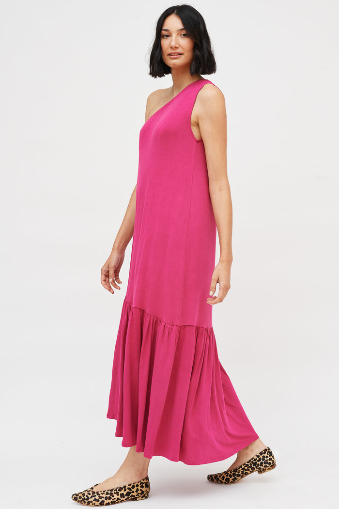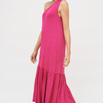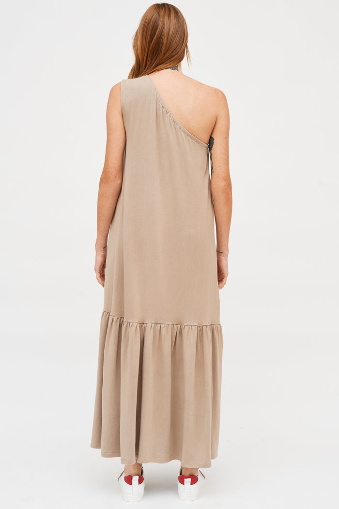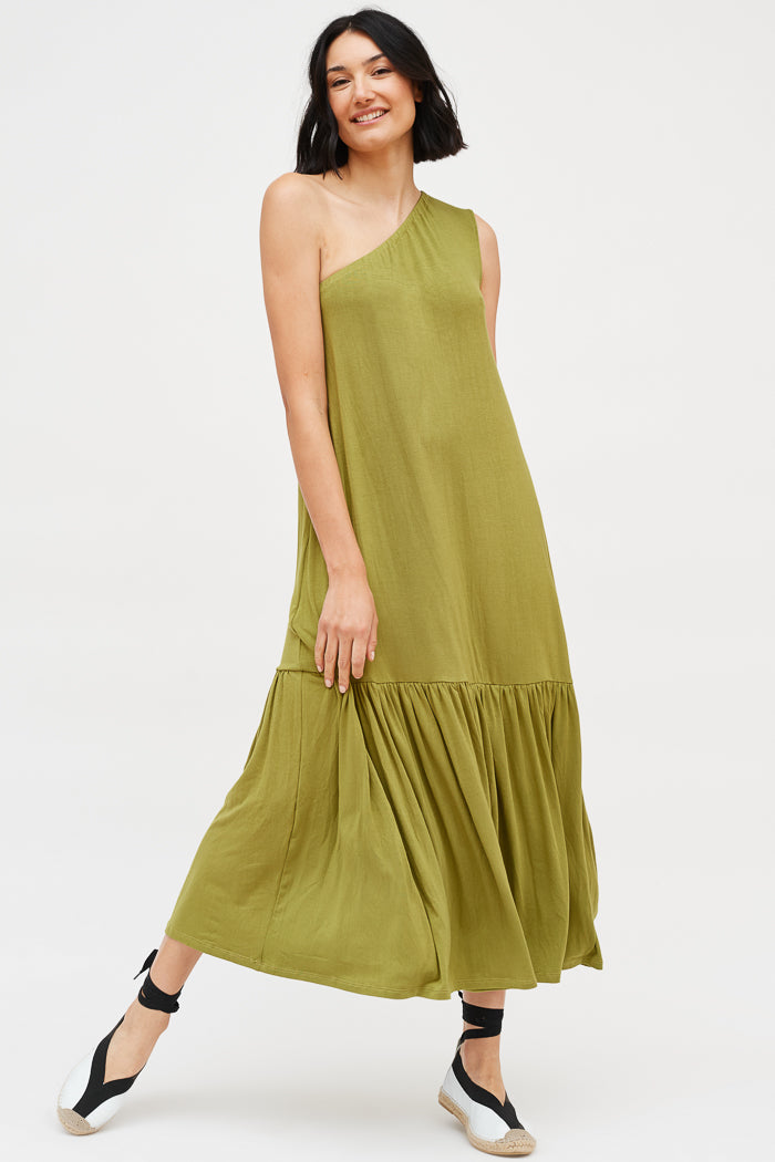Vestido en algodón modal, de un solo hombro y vuelos en el ruedo.
