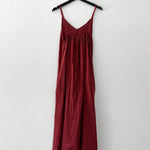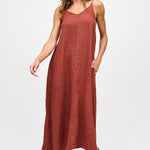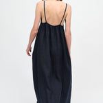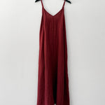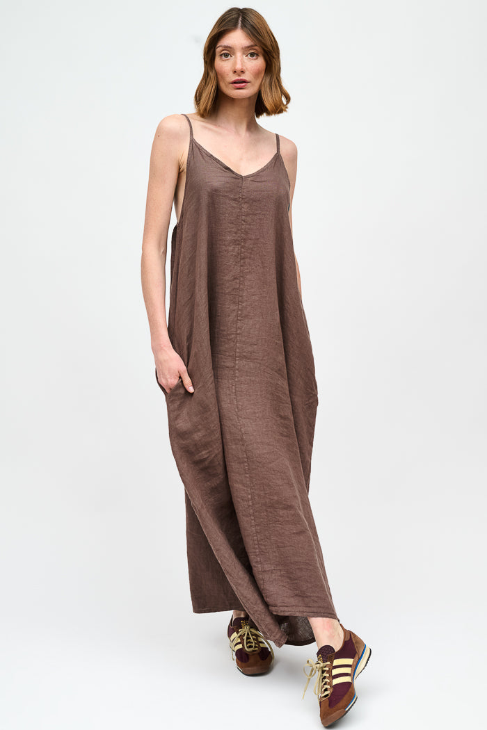 Vestido largo de viscosa italiana, con escote en V, espalda elasticada y pabilos.