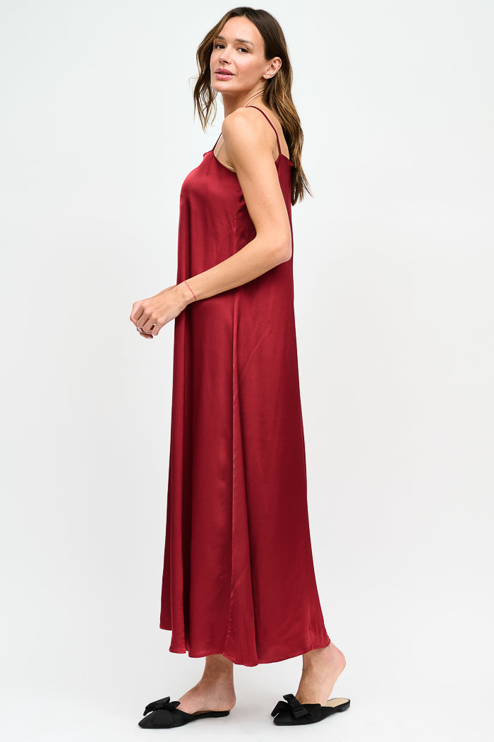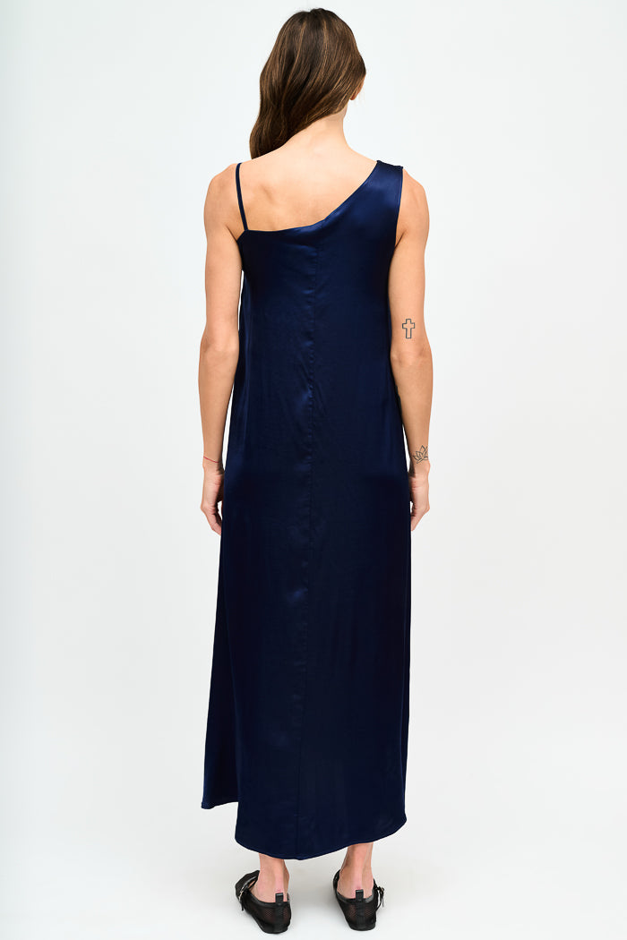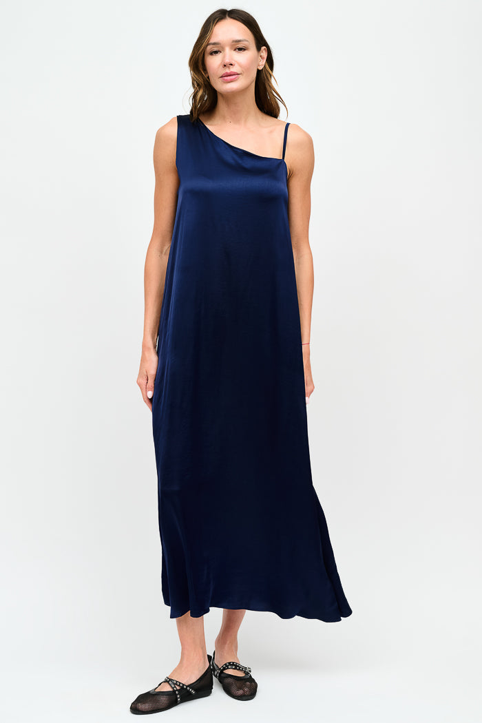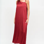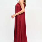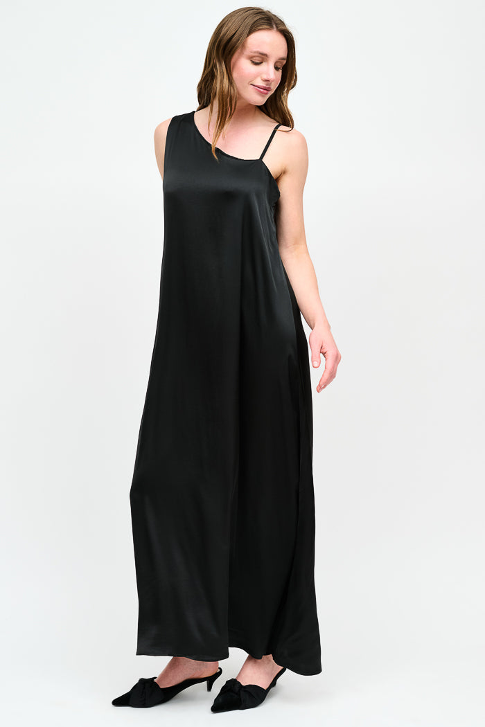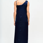Vestido largo de viscosa italiana, asimétrico con pabilos.