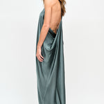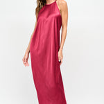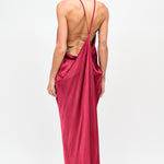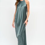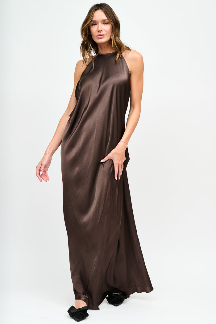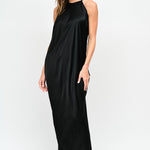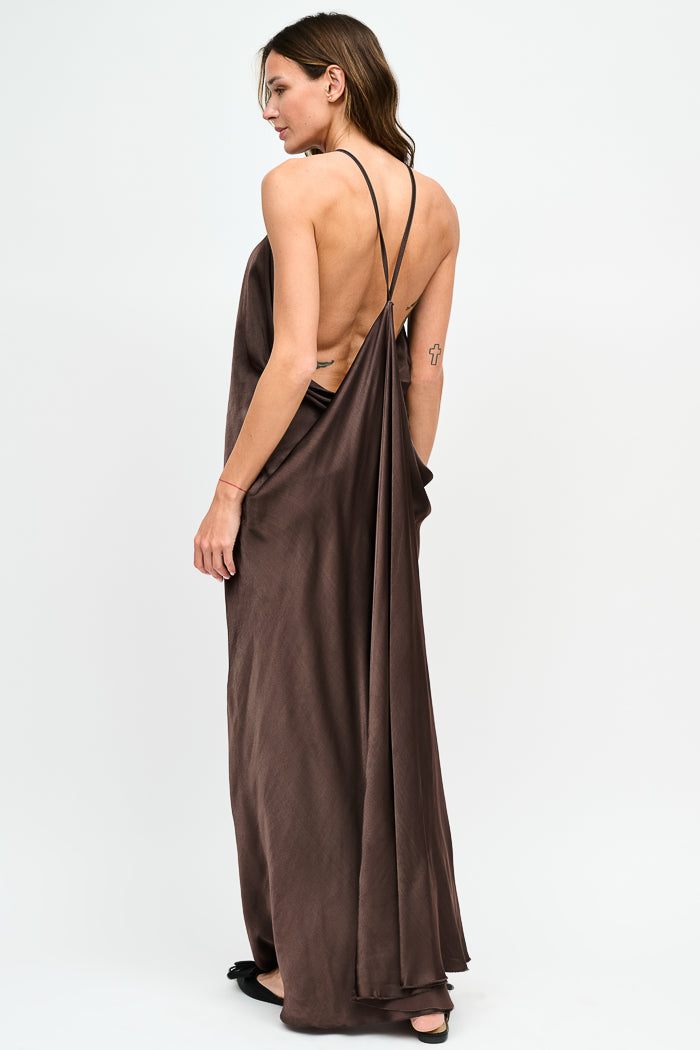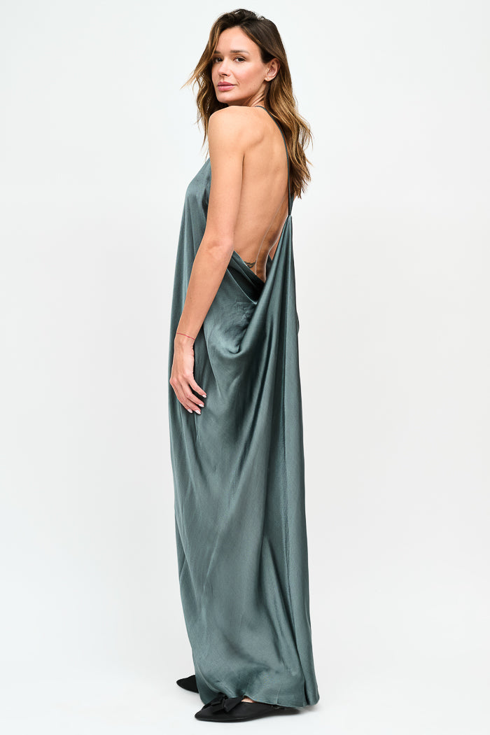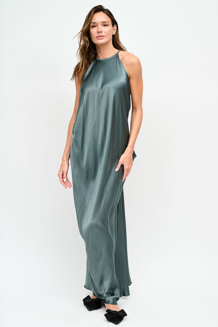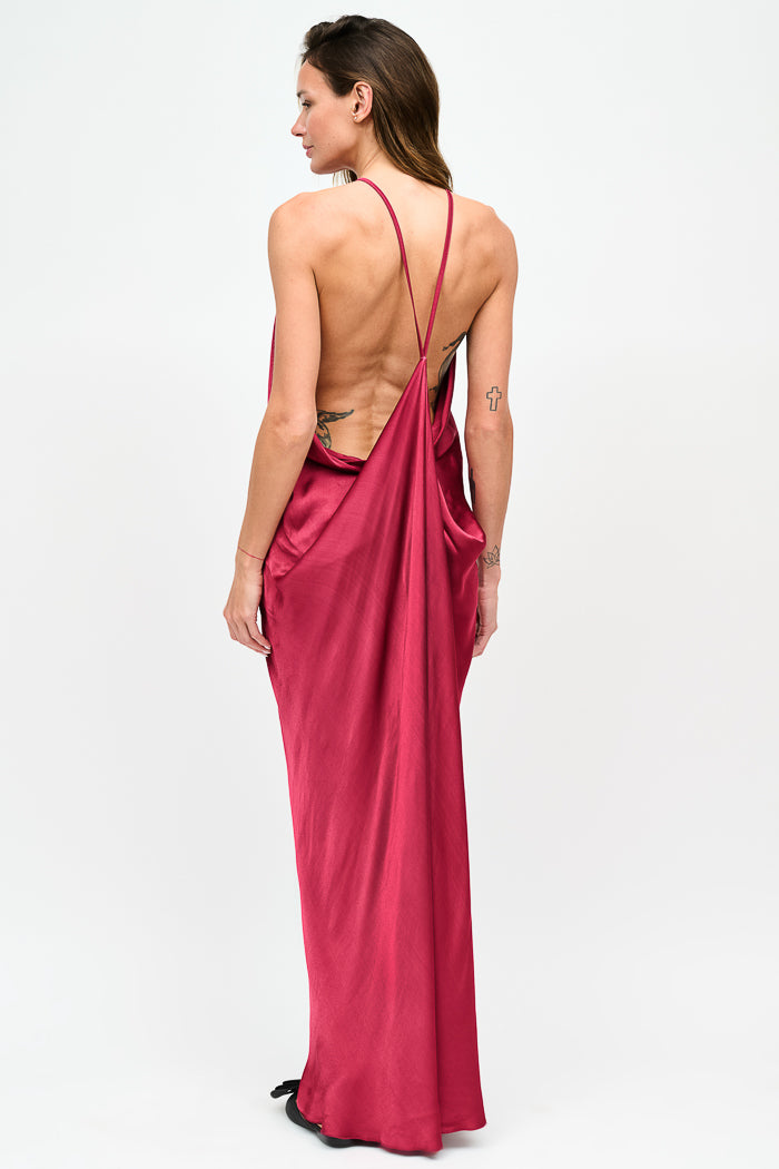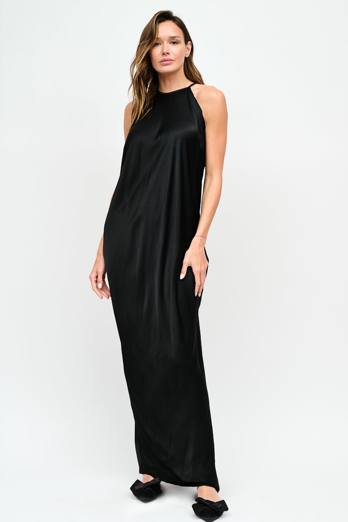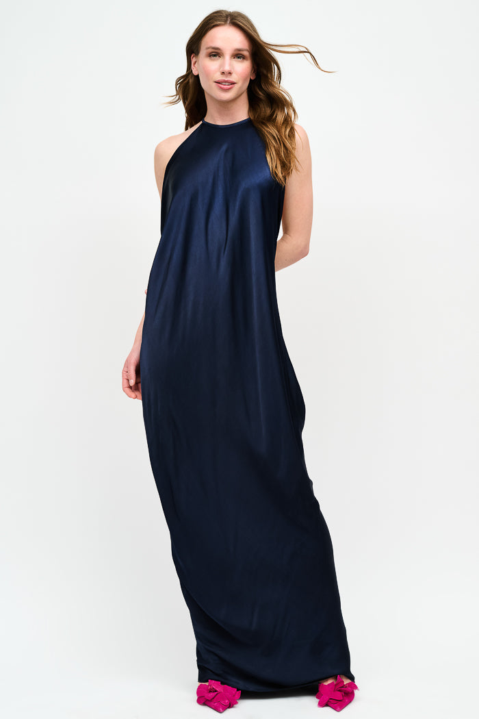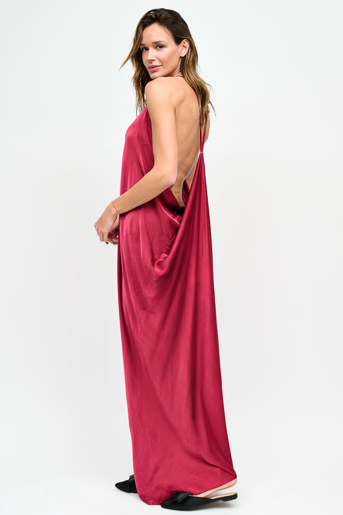 Vestido largo de viscosa italiana, con escote tipo halter y espalda descubierta.