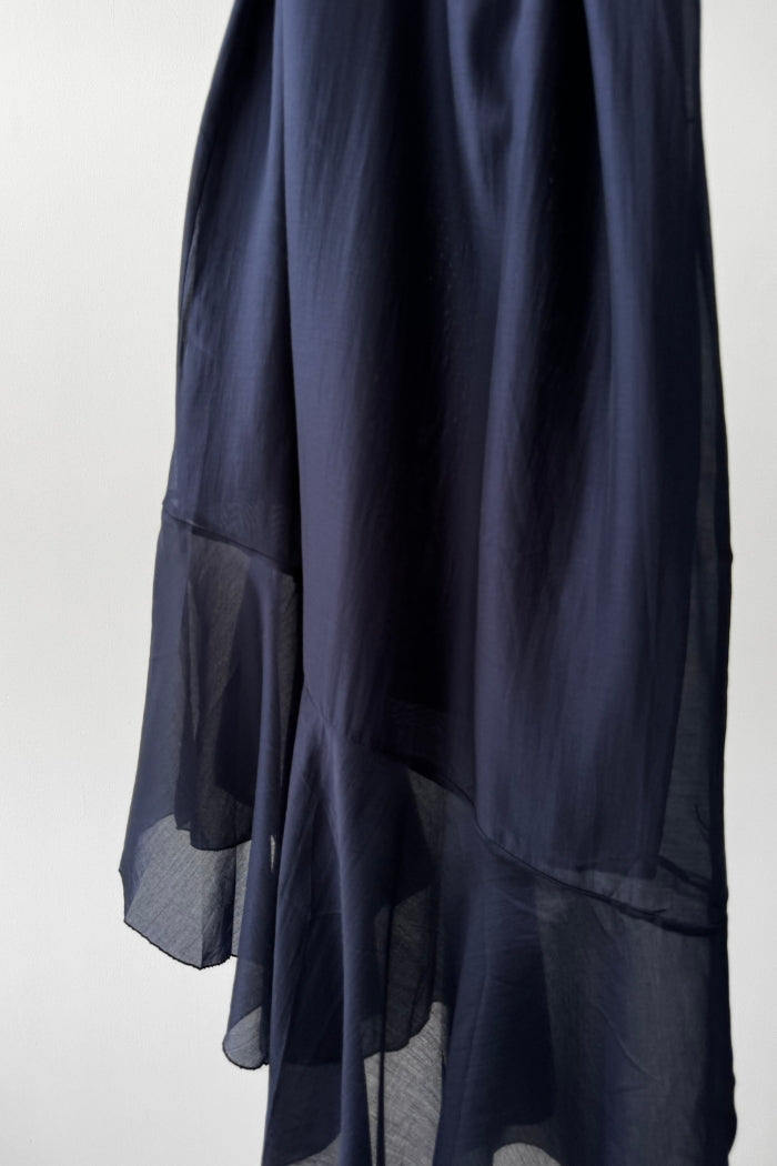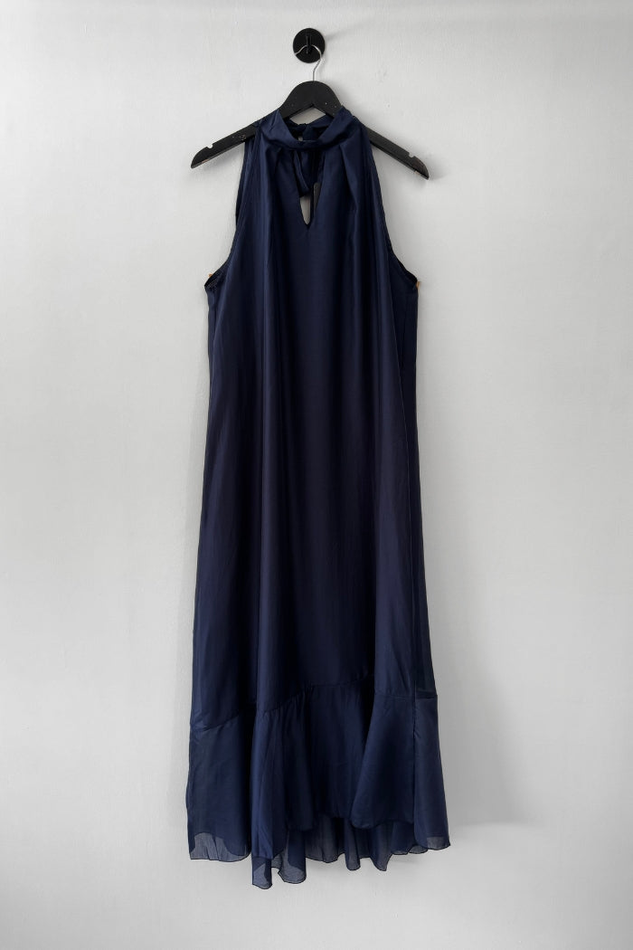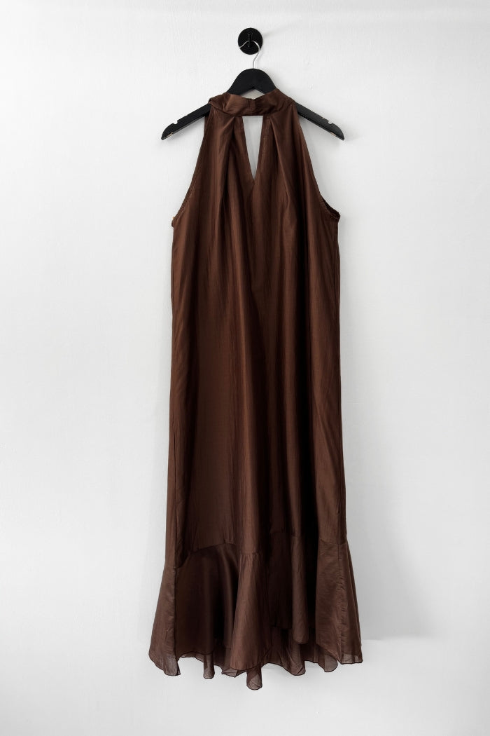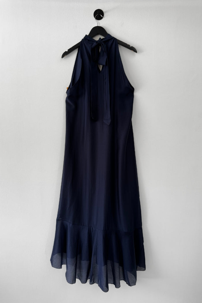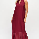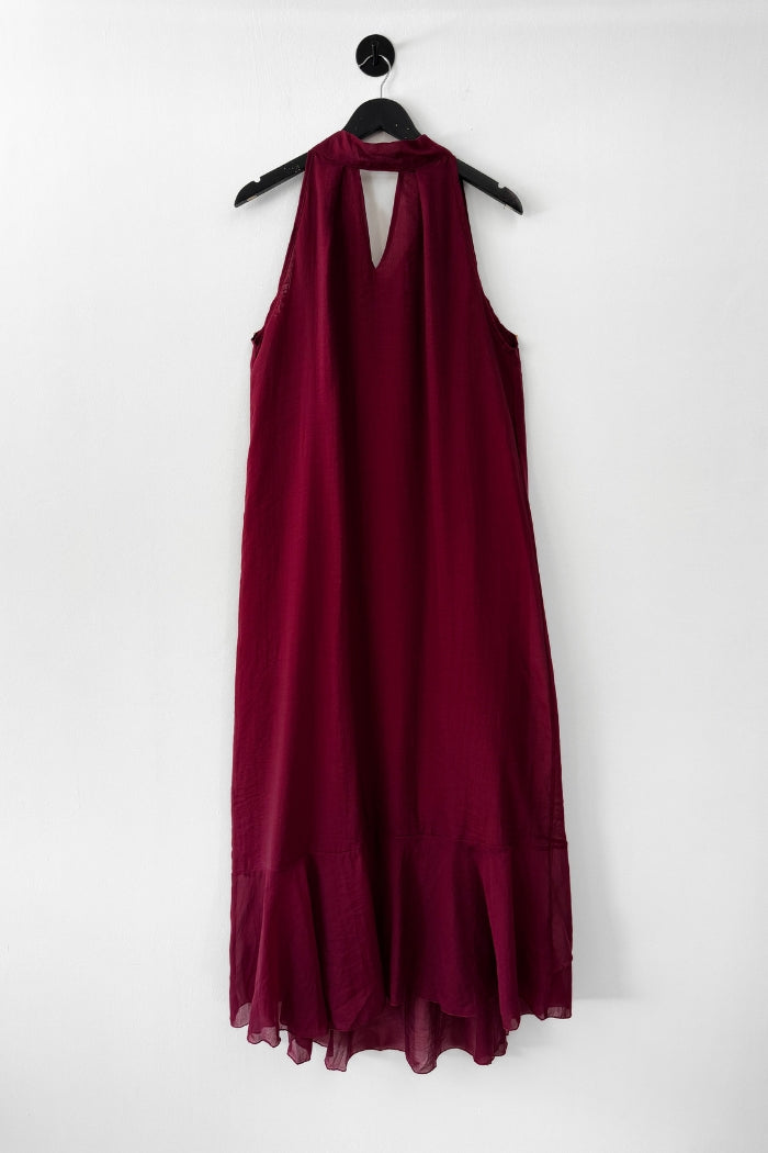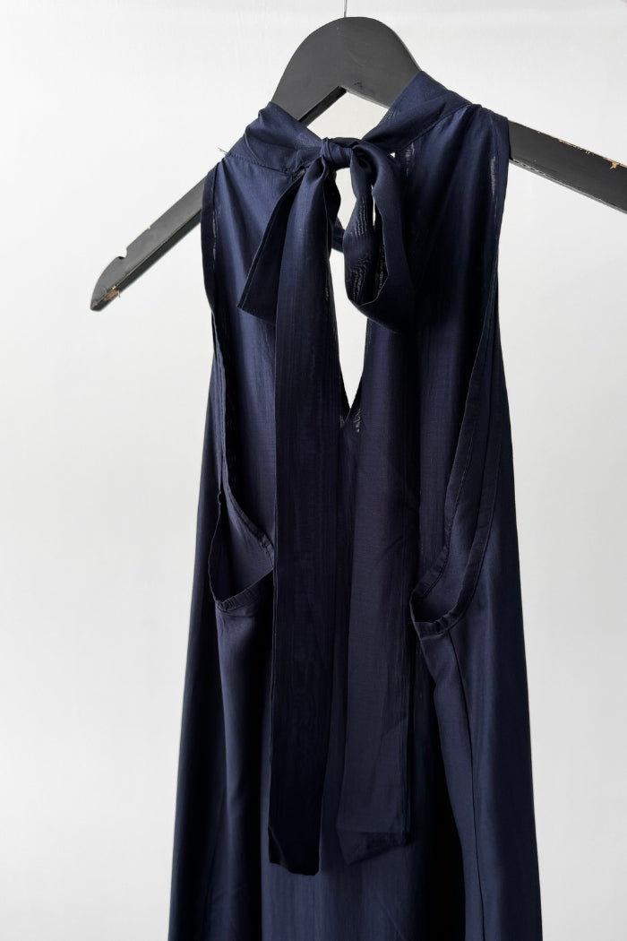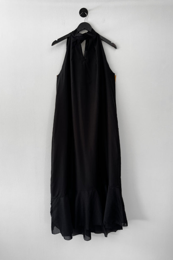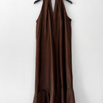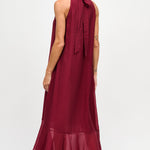 Vestido largo de viscosa italiana, con escote tipo halter y lazos para amarrar al cuello.