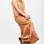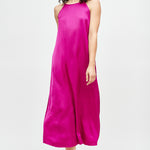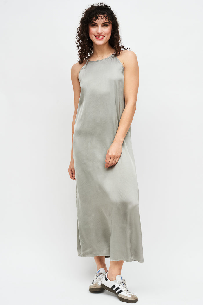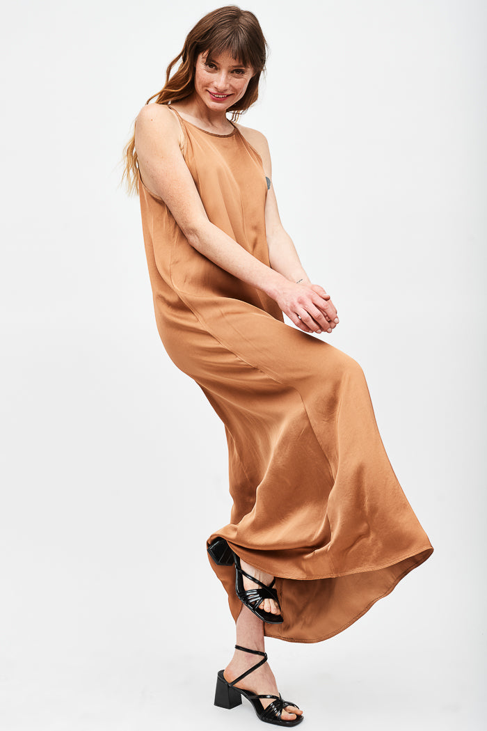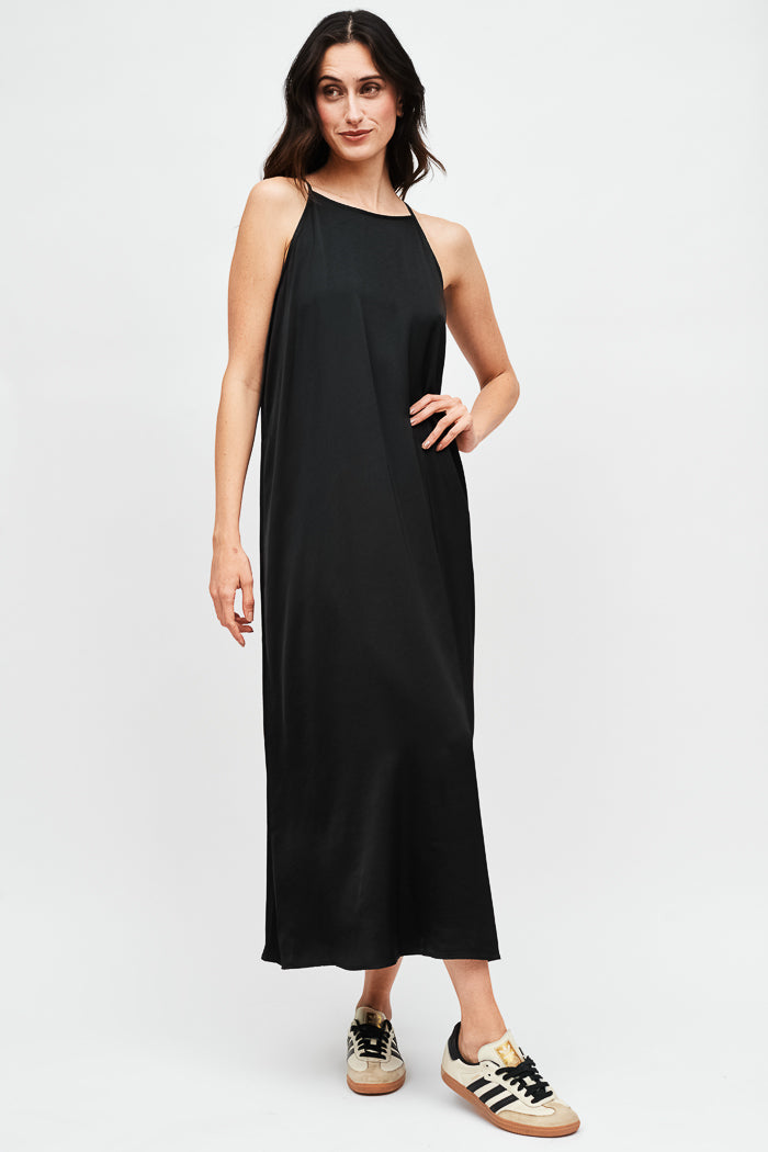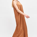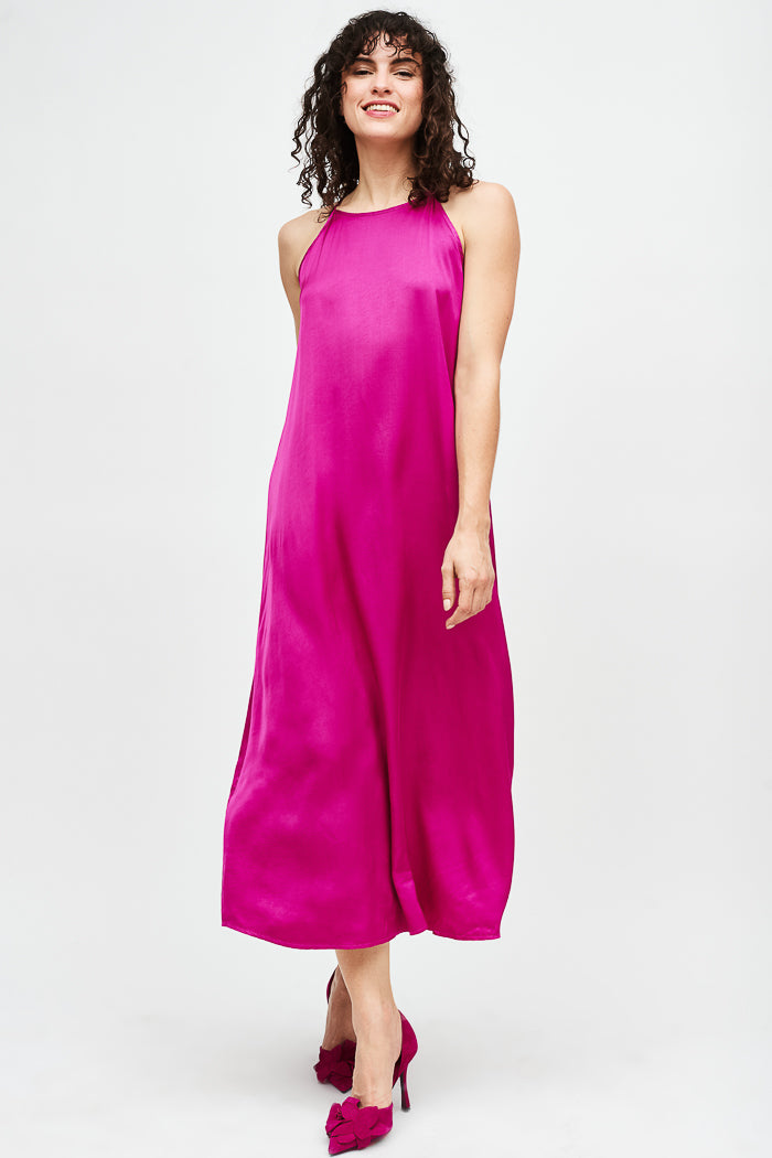 Vestido largo de viscosa italiana, con escote tipo halter y pabilos.