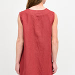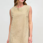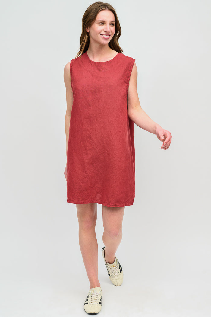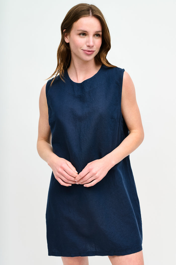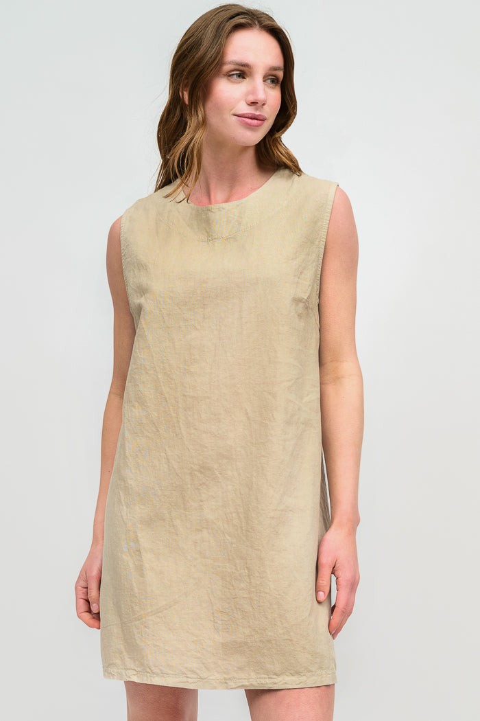 Vestido sin mangas de lino y algodón italiano. Cuello redondo.