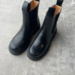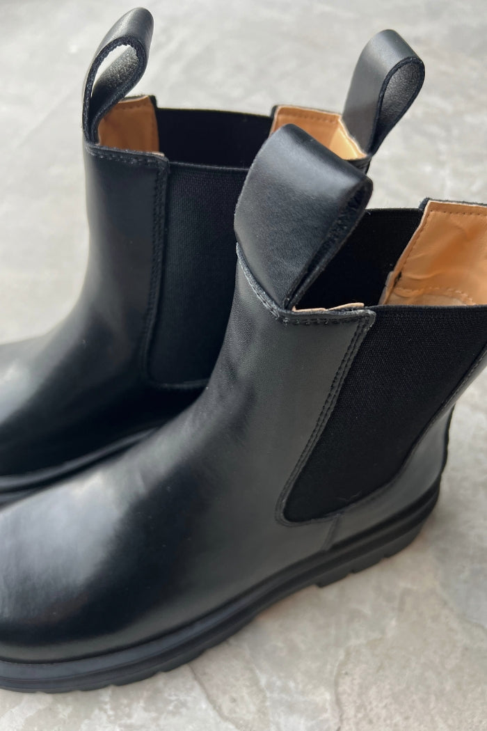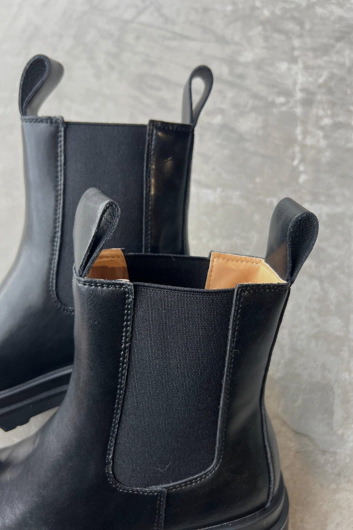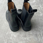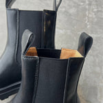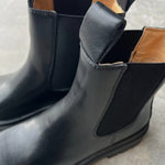 Bota lisa 100% cuero, elasticos a los costados. Suela de goma.