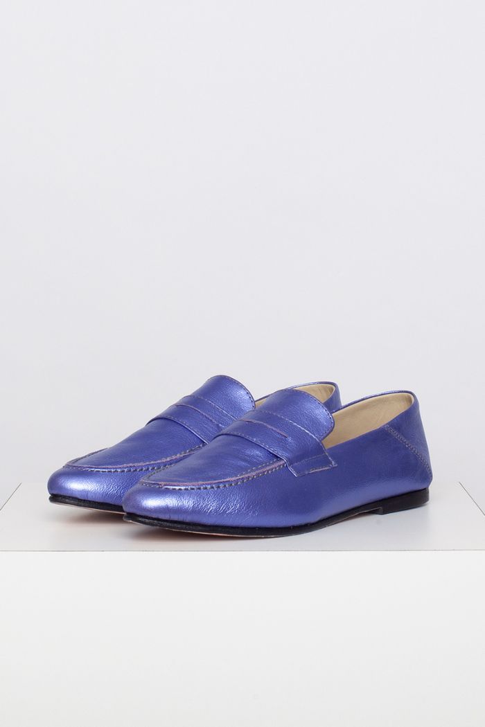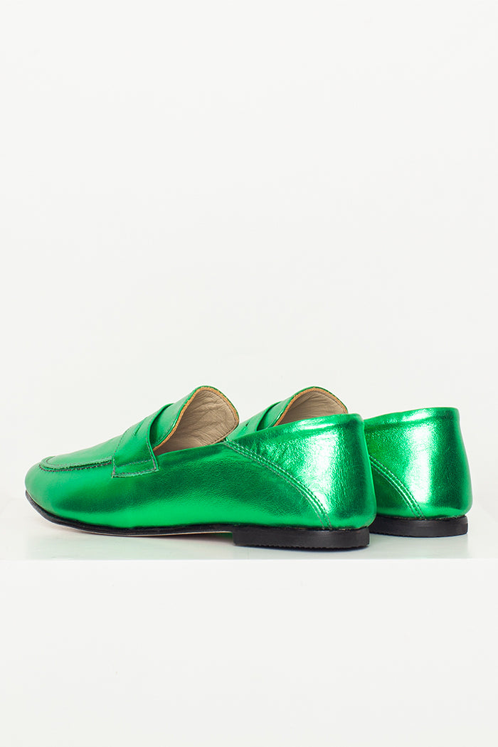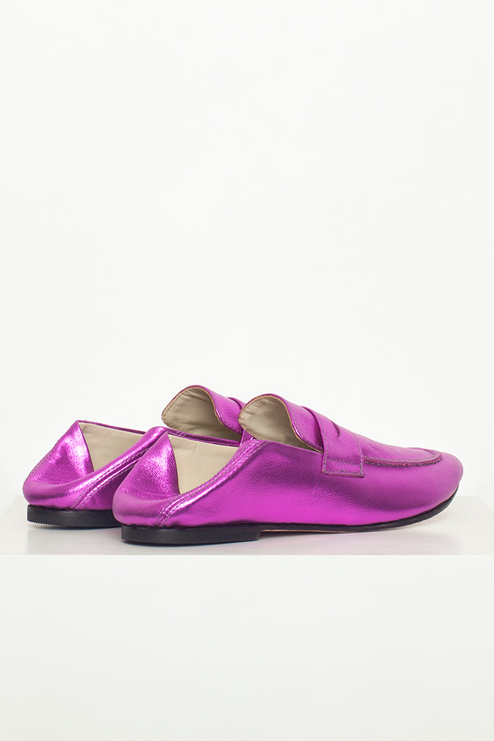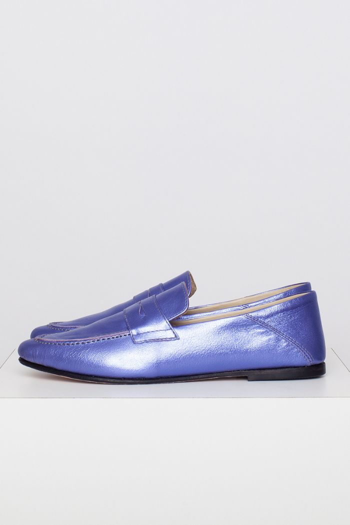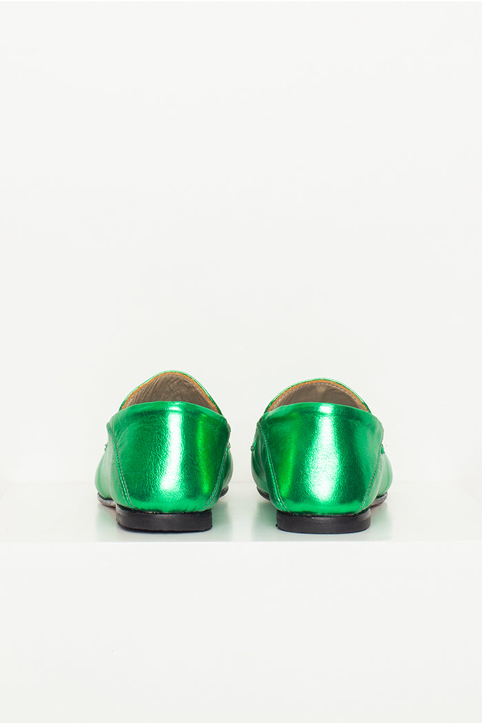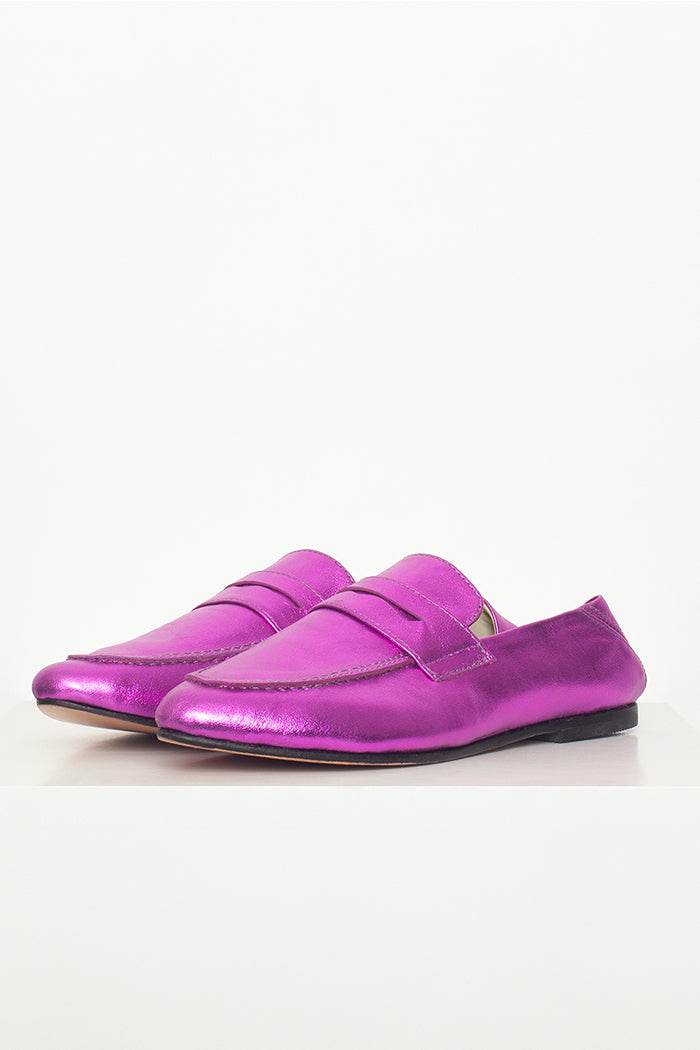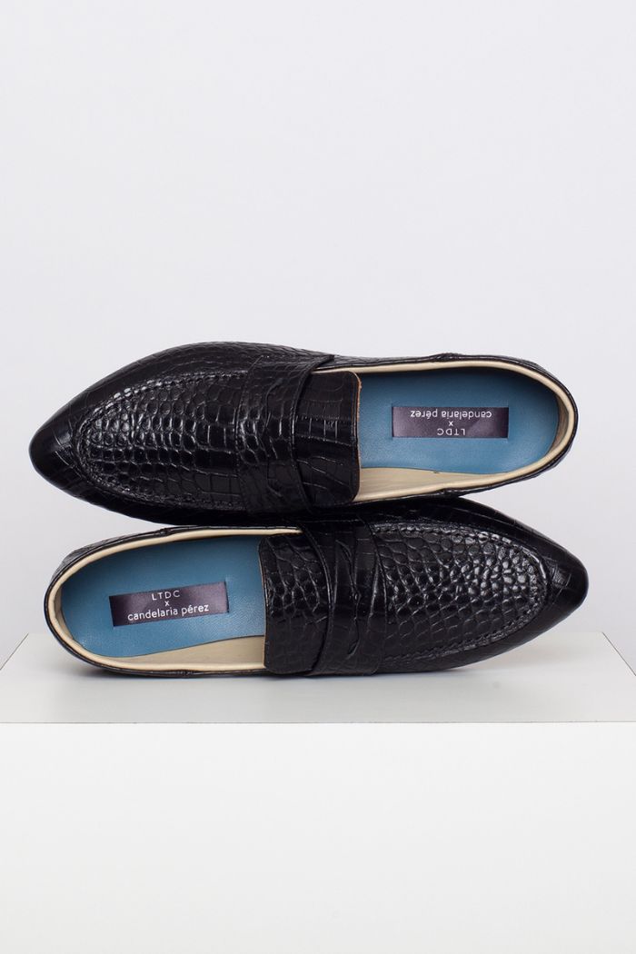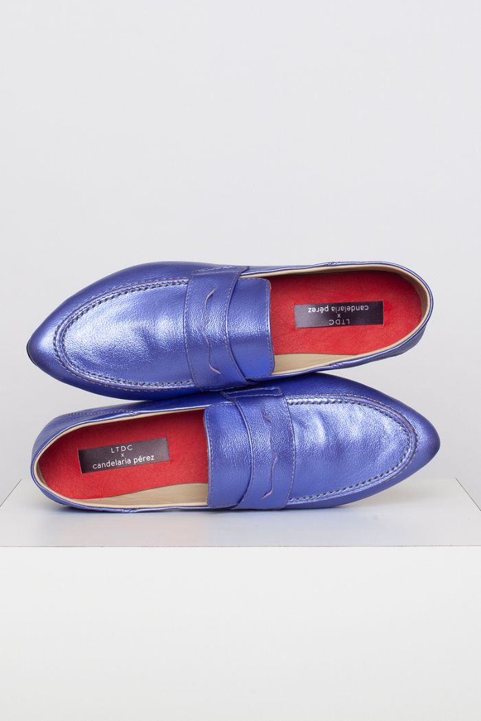Mocasín 100% cuero, fabricada a mano en Chile. Colaboración especial con Candelaria Pérez para La Tienda de Carolina.