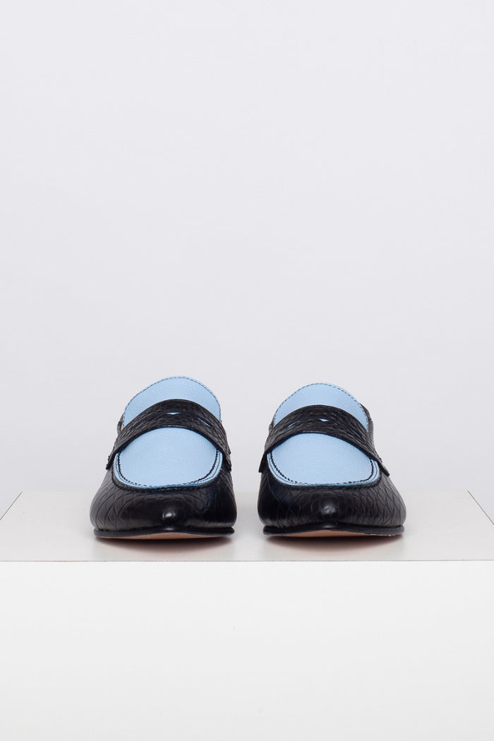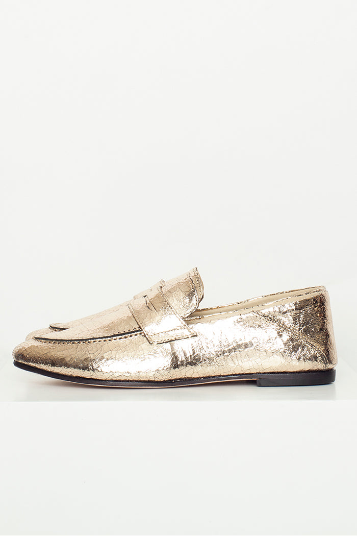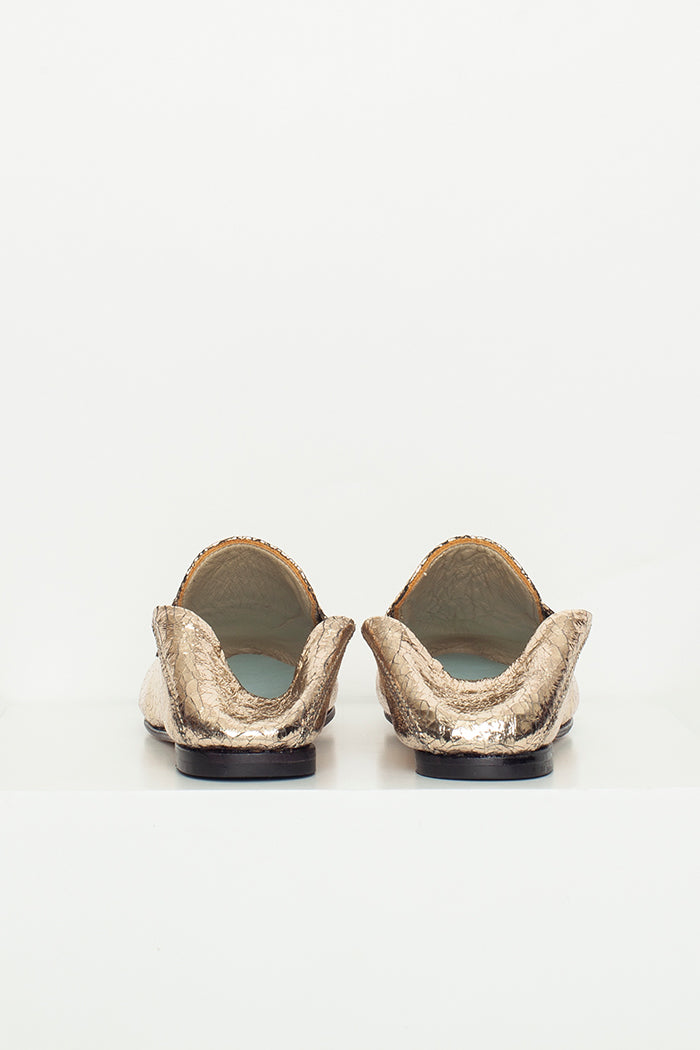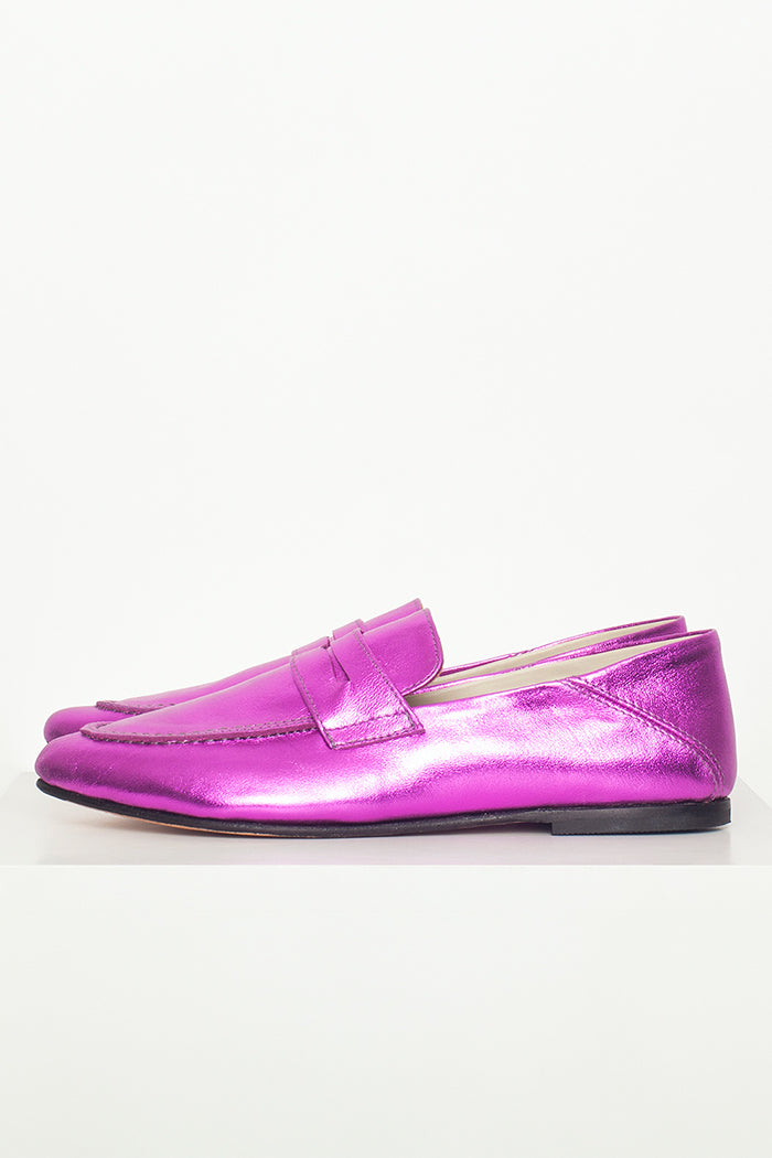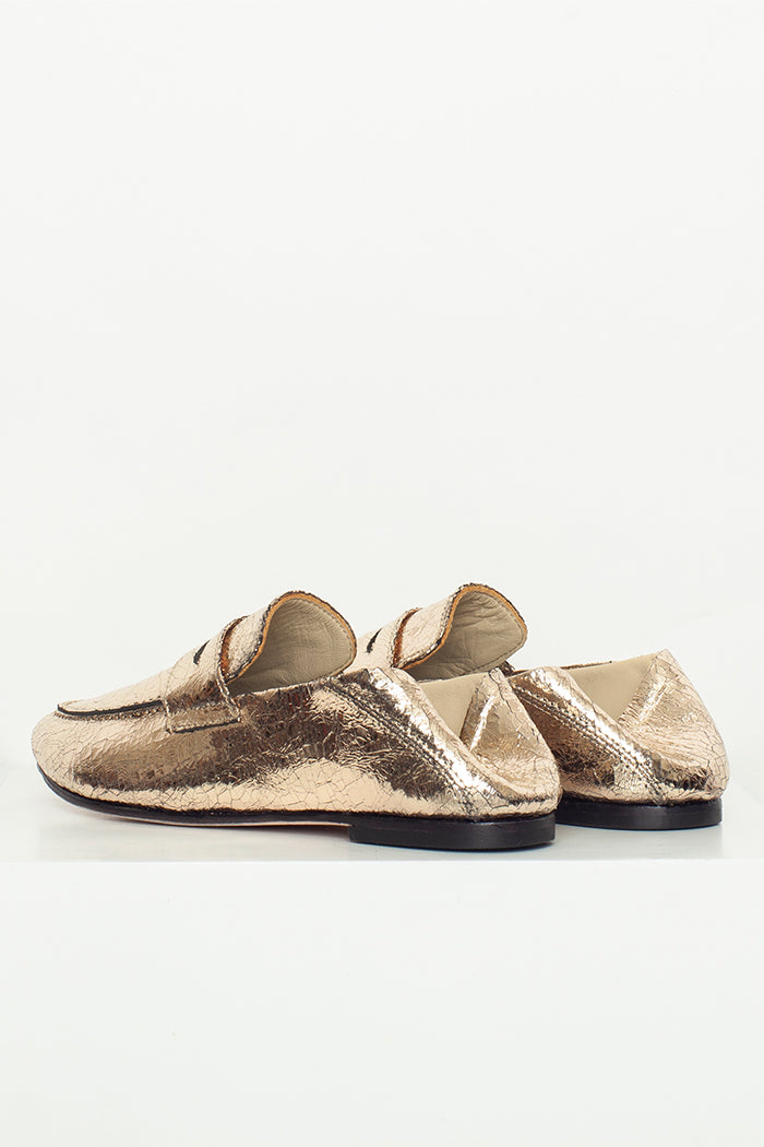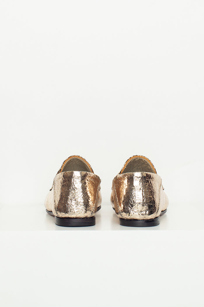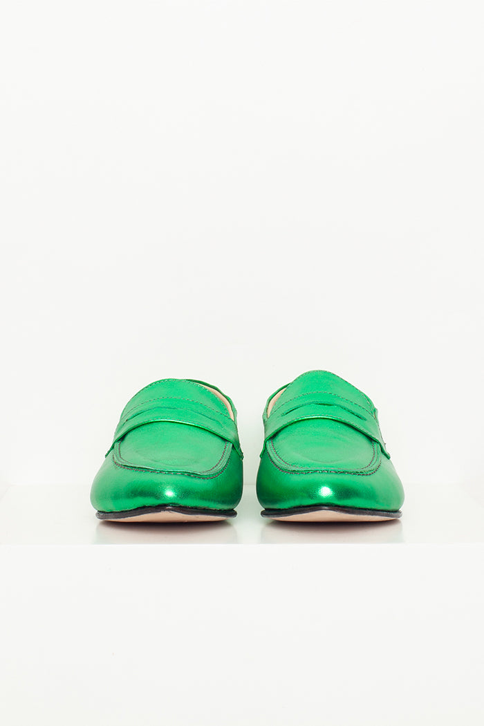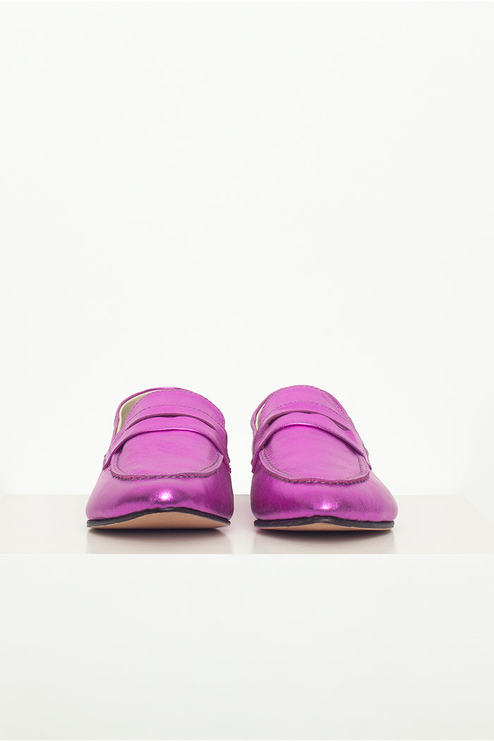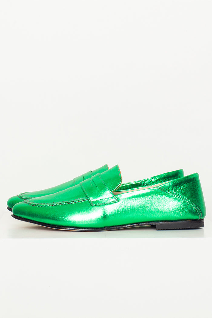 Mocasín 100% cuero, fabricada a mano en Chile. Colaboración especial con Candelaria Pérez para La Tienda de Carolina.