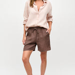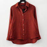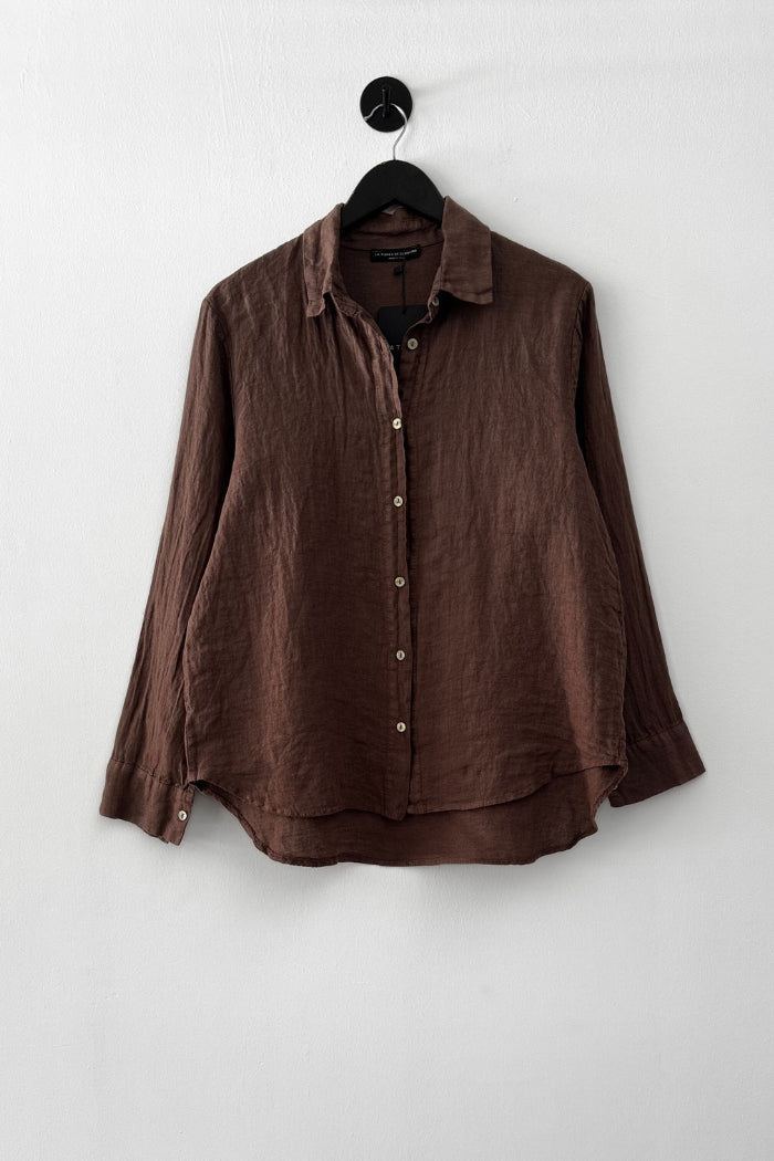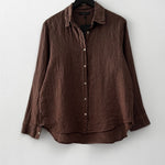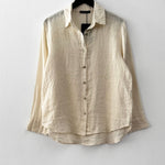 Blusa de lino italiano manga larga, con cuello camisero y botones.