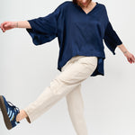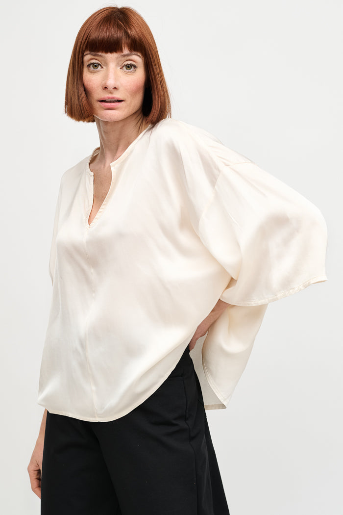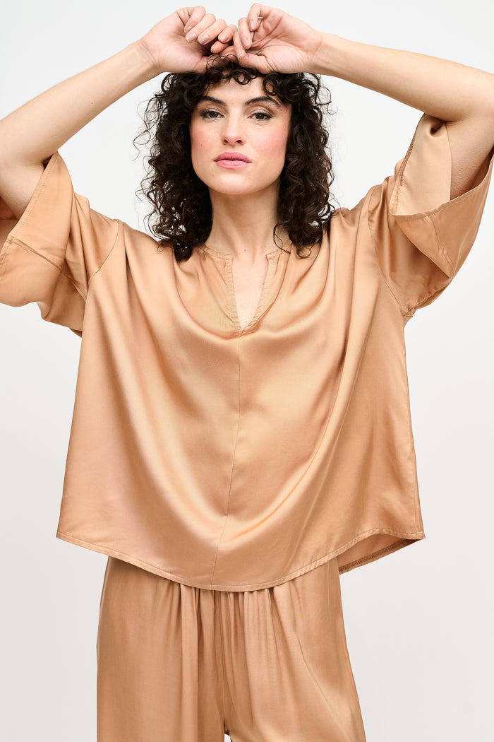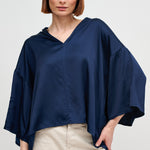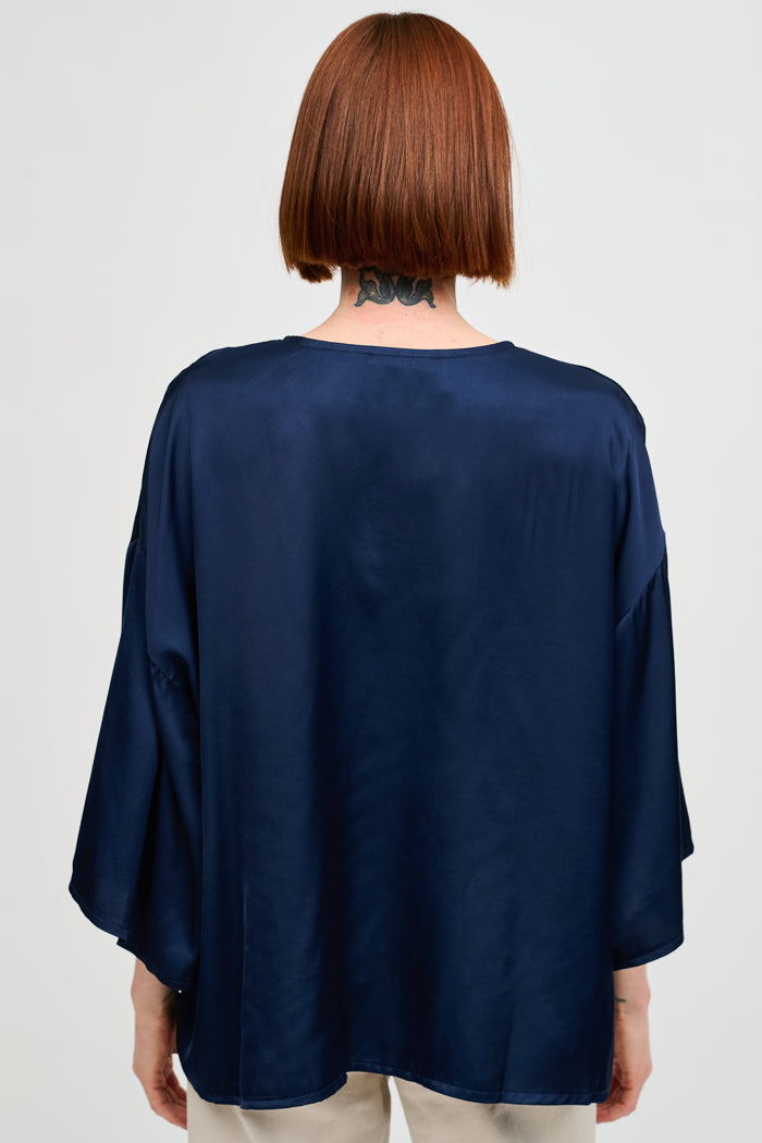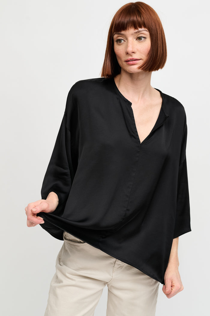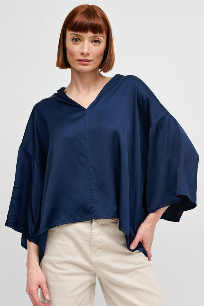 Blusa de viscosa italiana con escote en V. Manga 3/4.