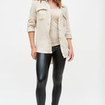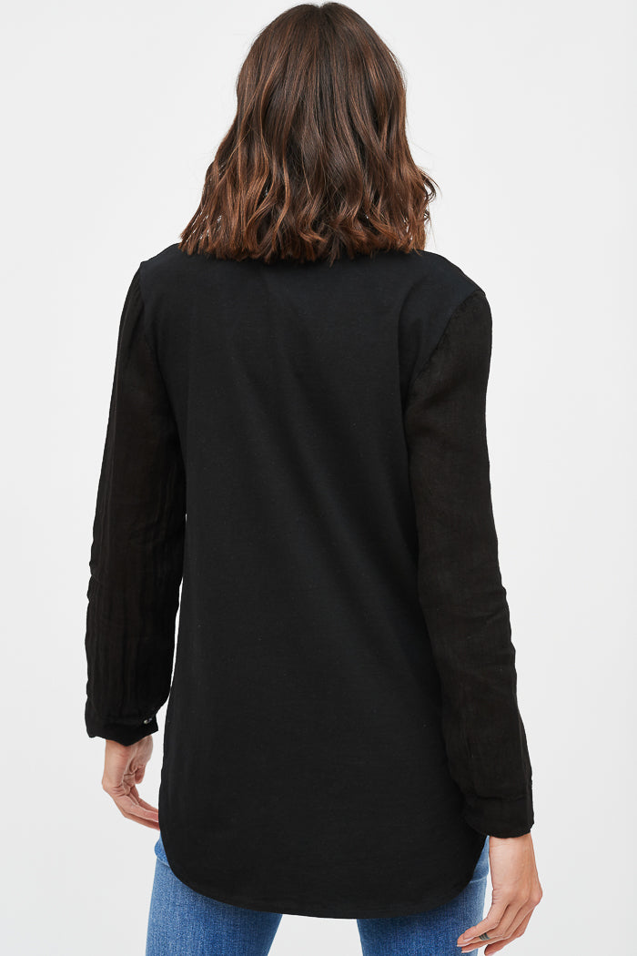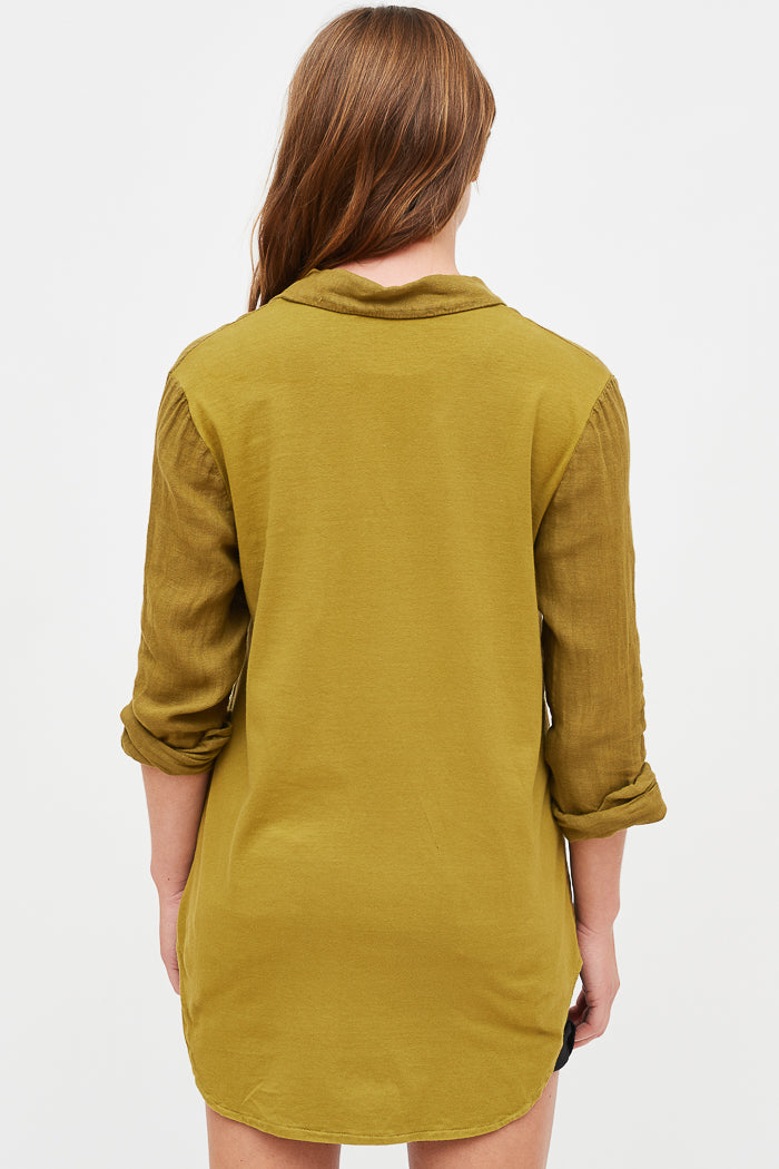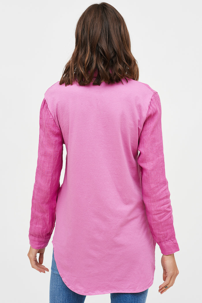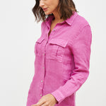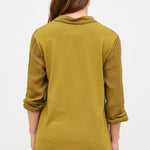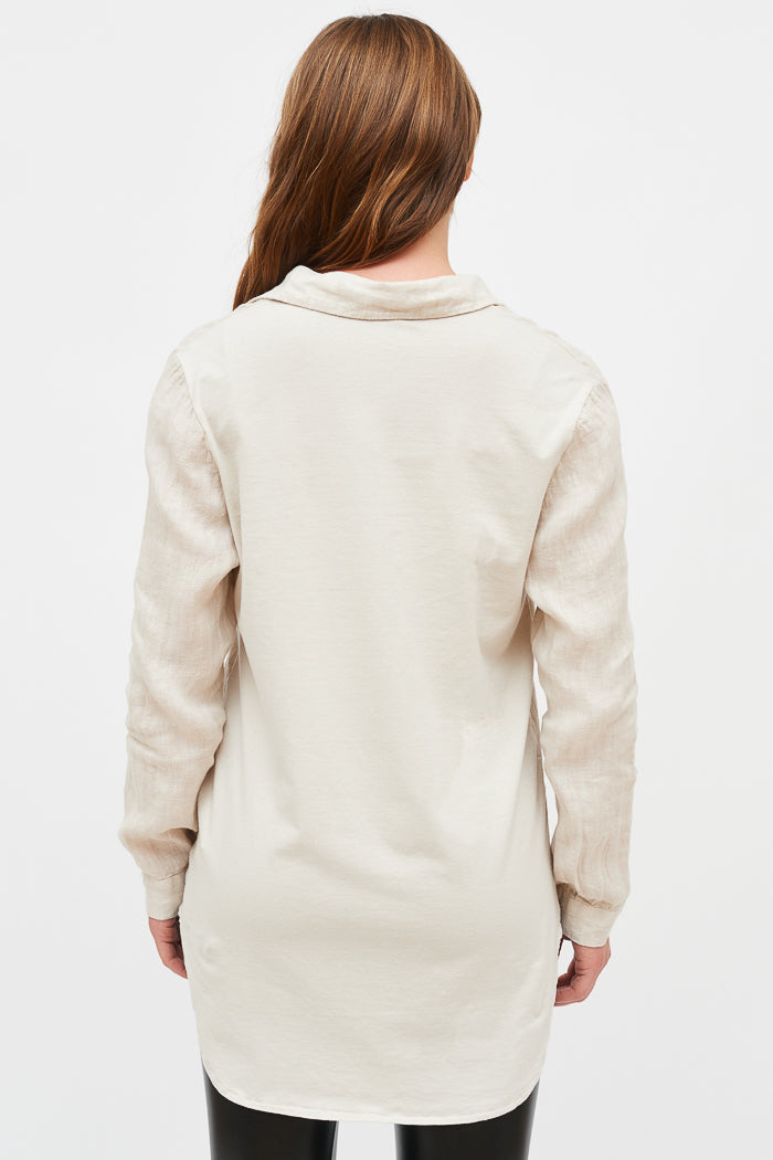 Blusa en lino italiano manga 3/4, con cuello camisero, botones y 2 bolsillos delanteros.