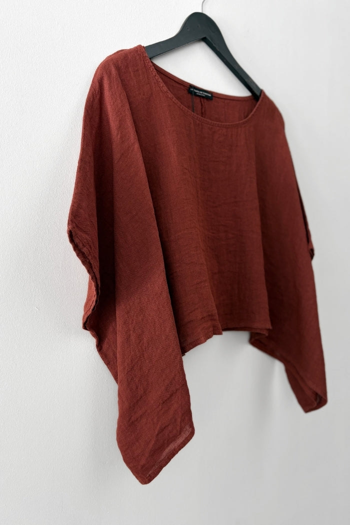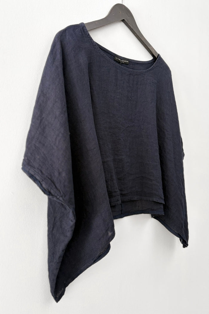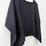 Blusa ancha de lino italiano, con cuello bote y manga corta.