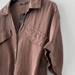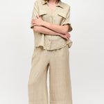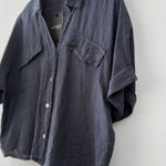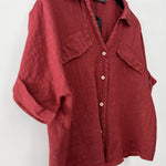 Blusa en lino italiano manga corta, con cuello camisero, botones y 2 bolsillos delanteros.