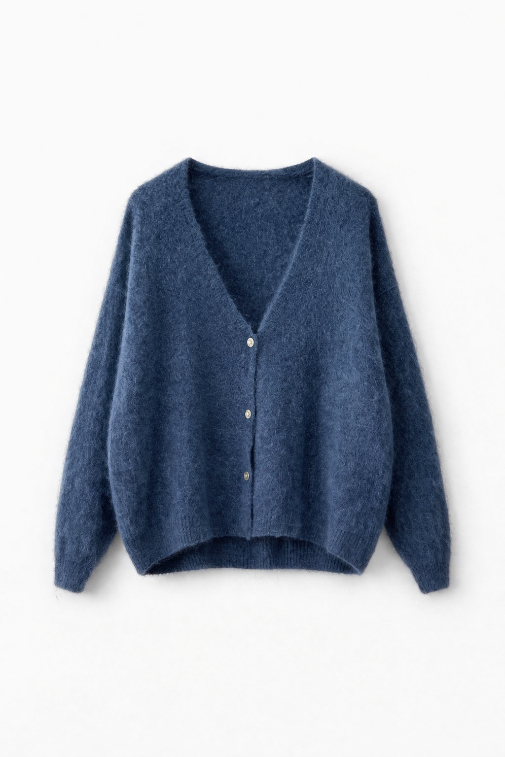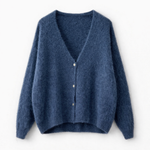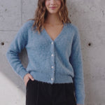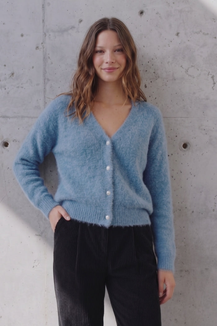 Chaleco abotonado tejido en baby alpaca y lana con manga larga.