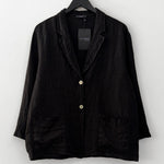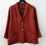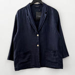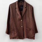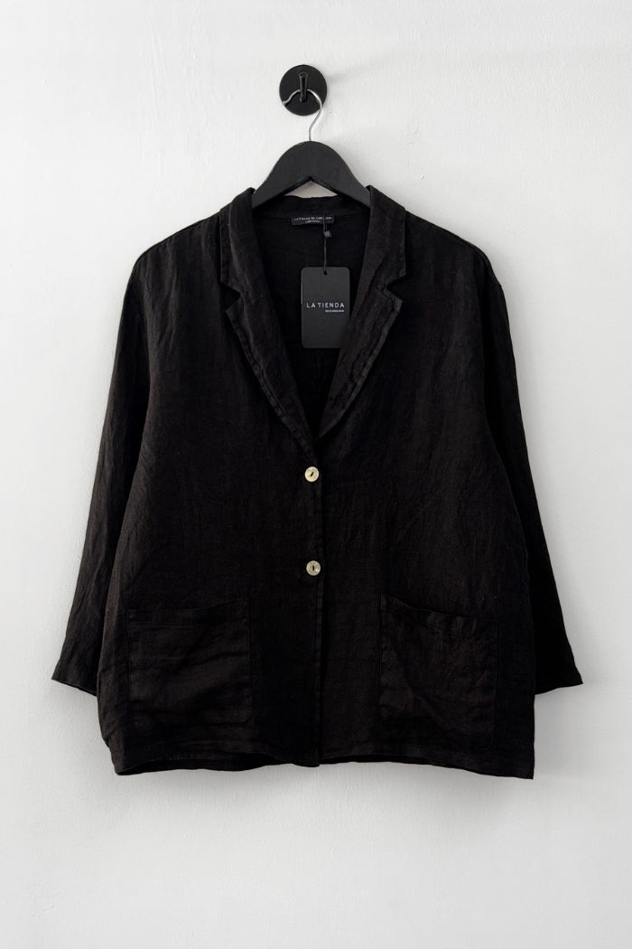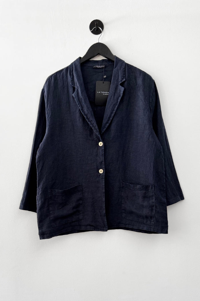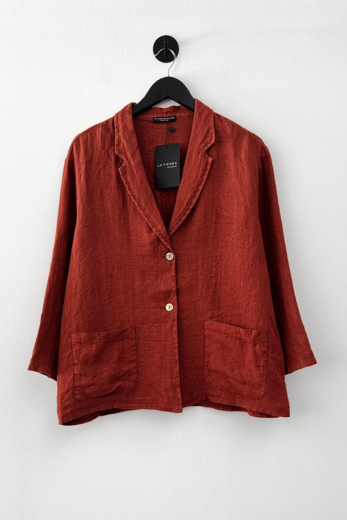 Chaqueta blazer en lino italiano. Botón delantero, cuello camisero y bolsillos.