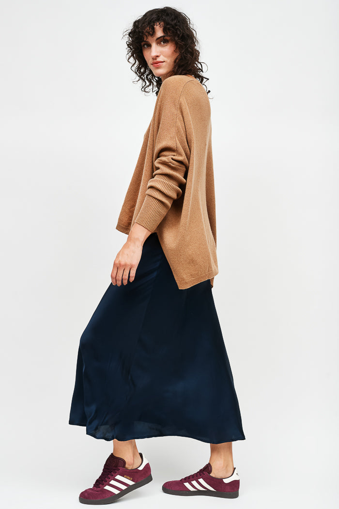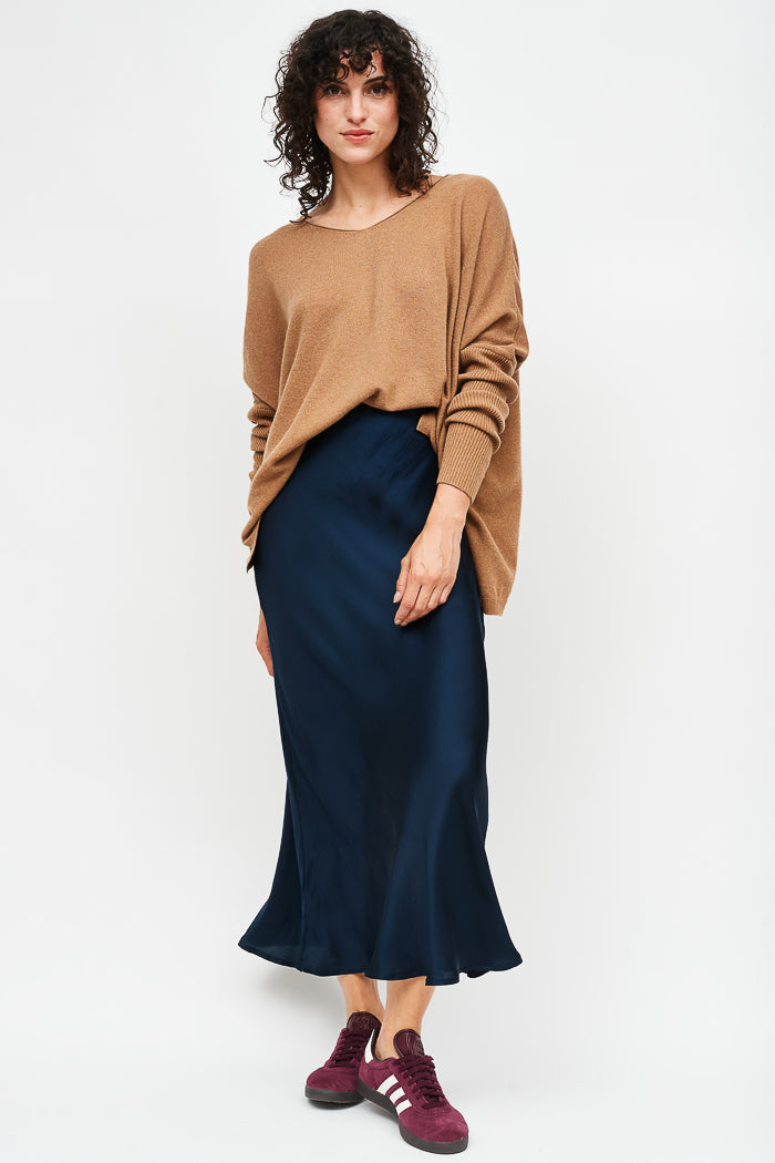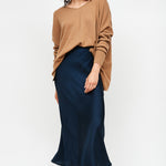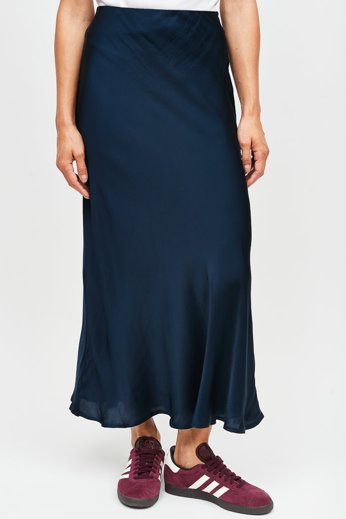 Falda largo medio de viscosa italiana, con pretina elasticada.