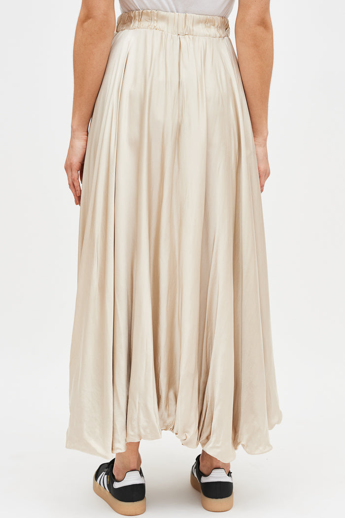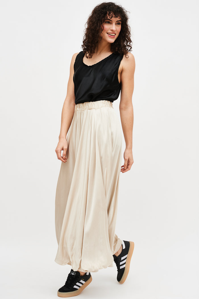 Falda larga englobada de viscosa italiana, con pretina elasticada.