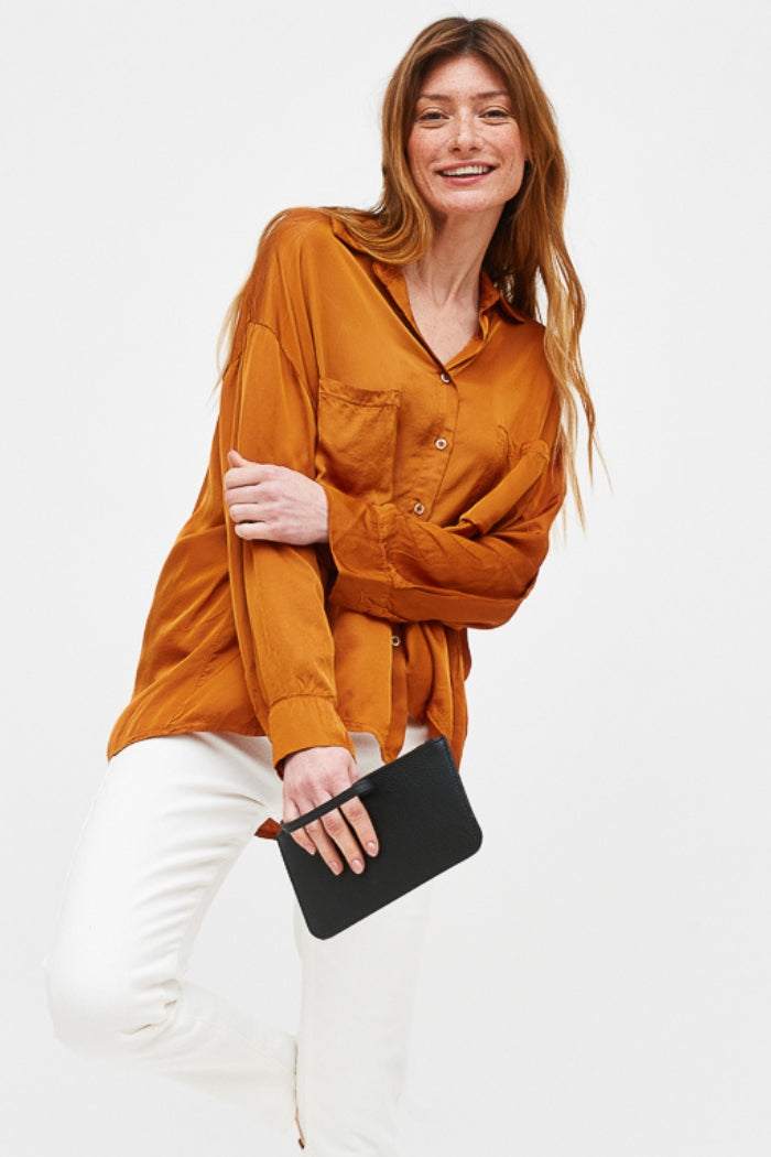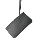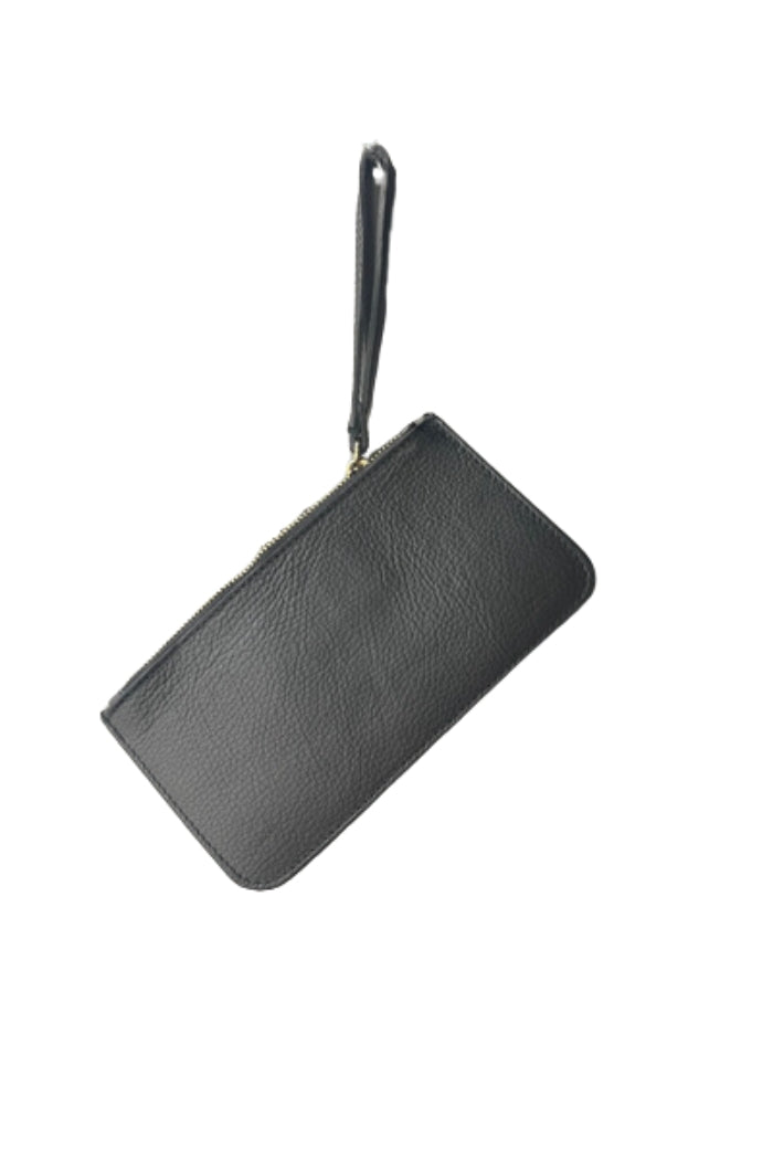 Cartera de cuero, tipo sobre pequeño, sin forro y con cierre.