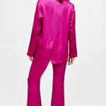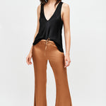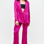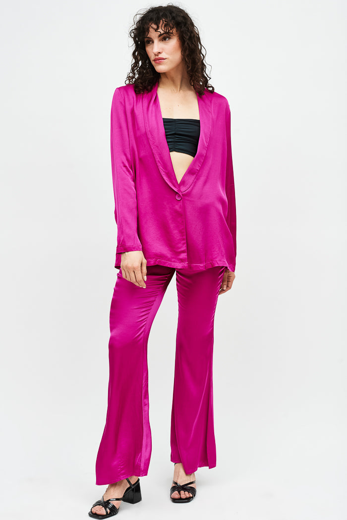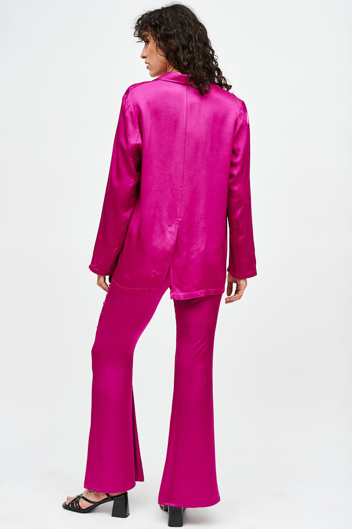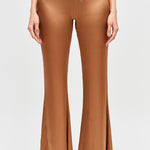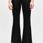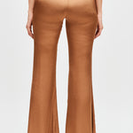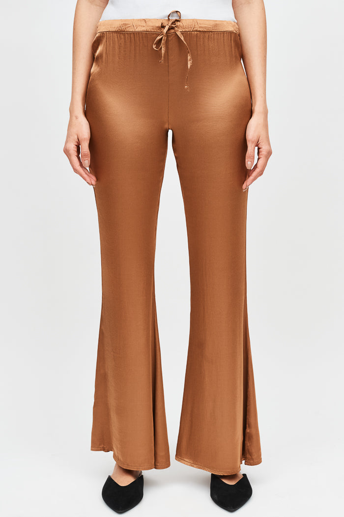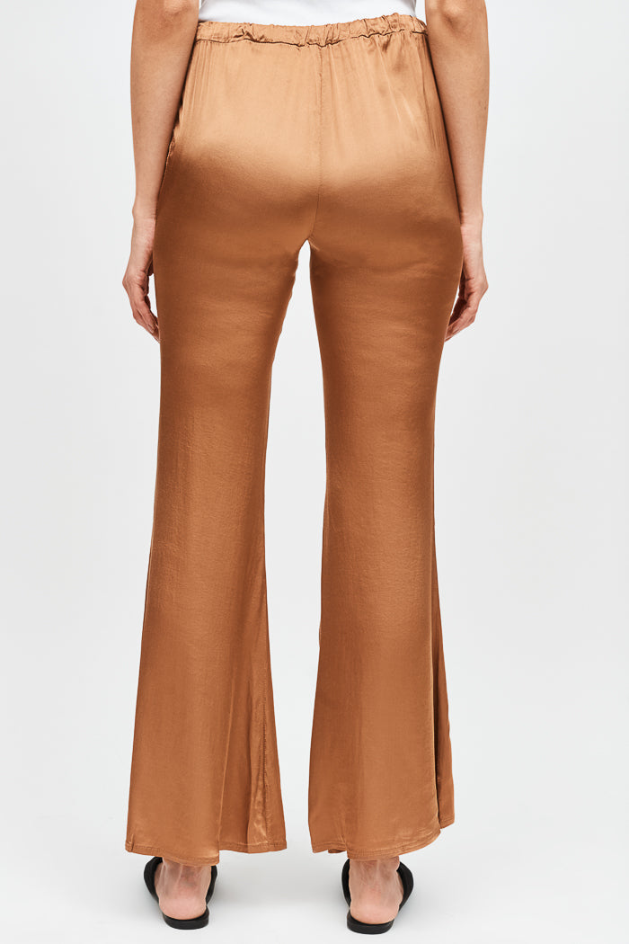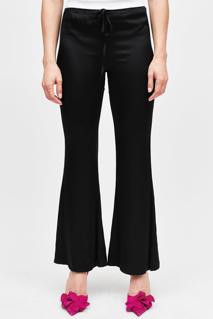 Pantalón pierna flare en viscosa italiano con tiro alto y cintura elasticada.