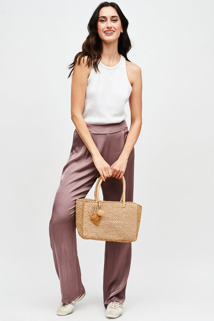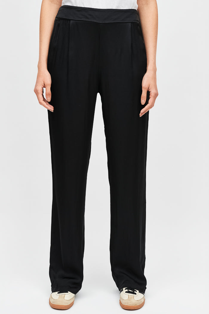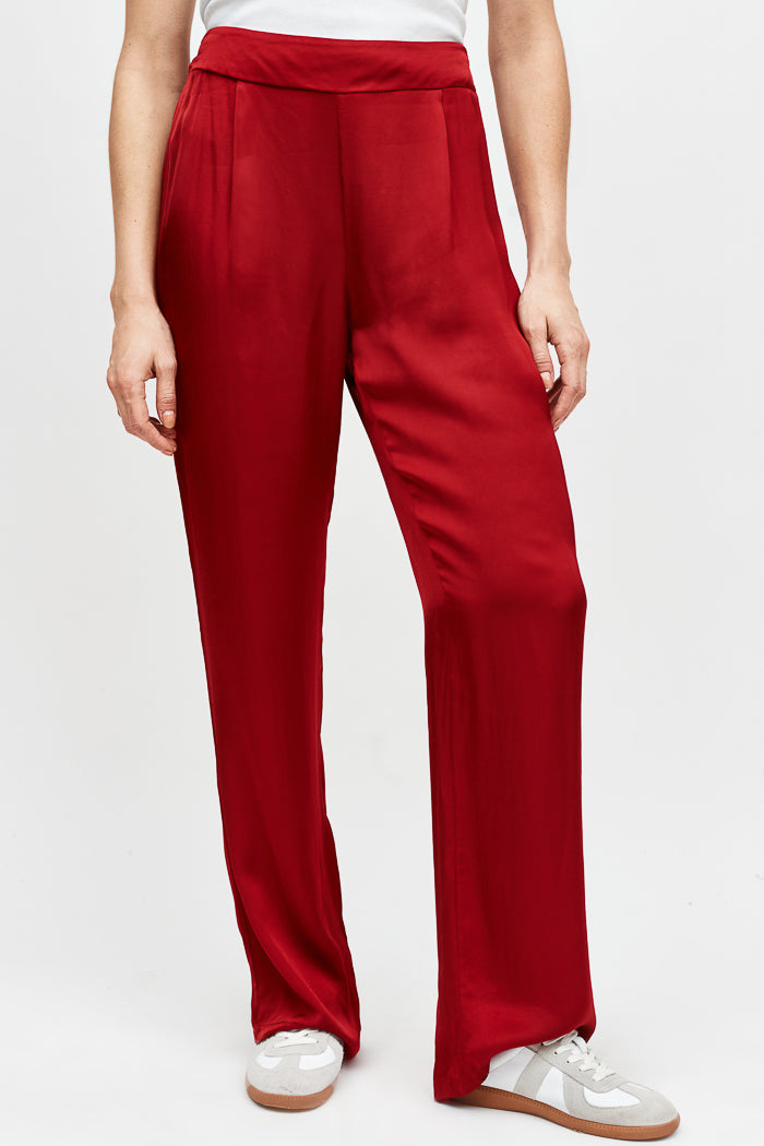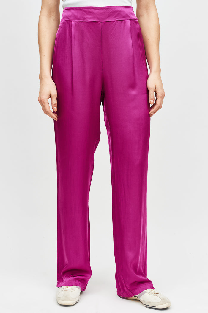 Pantalón largo de viscosa italiana con pretina elasticada y pinzas delanteras.