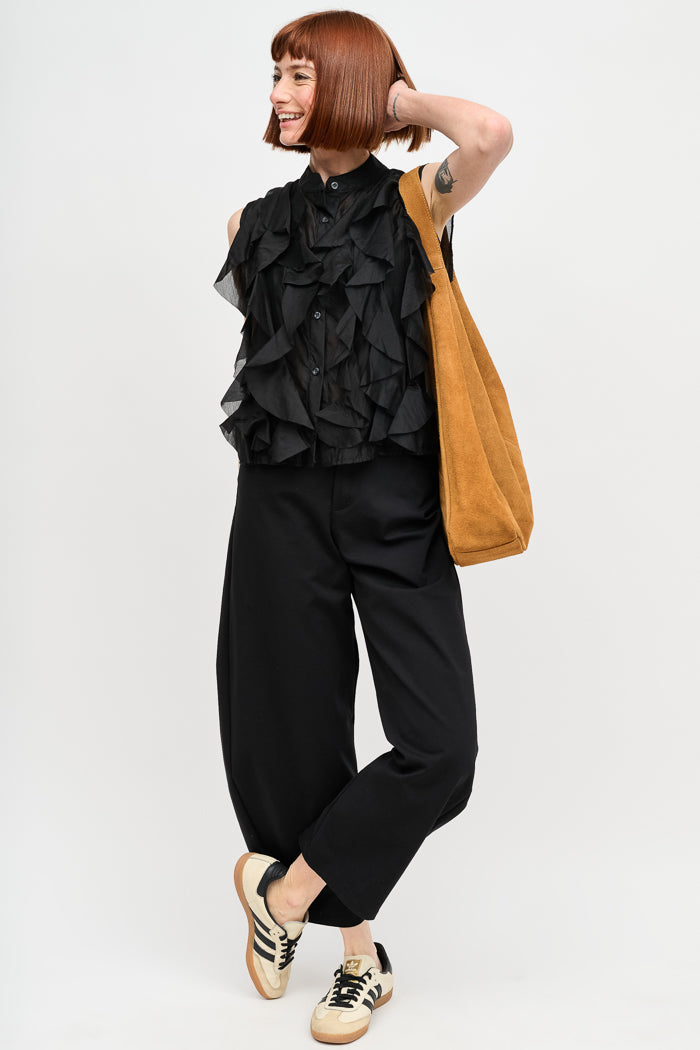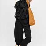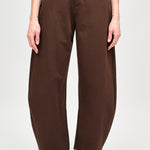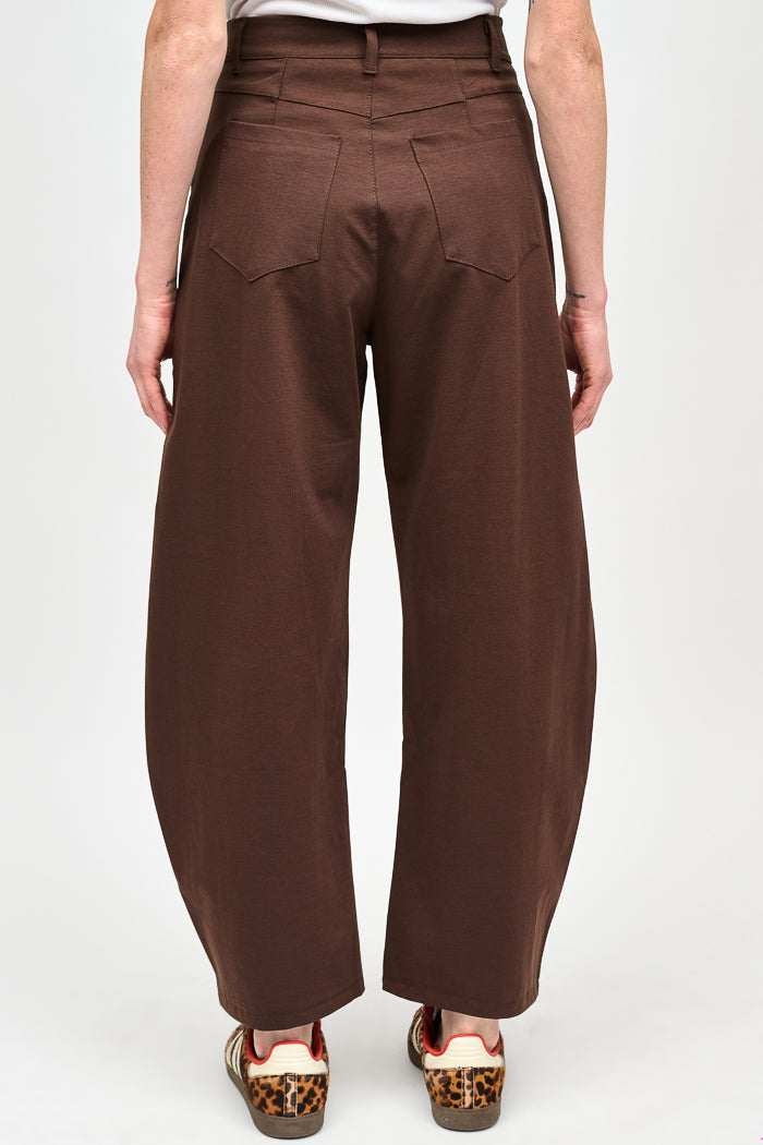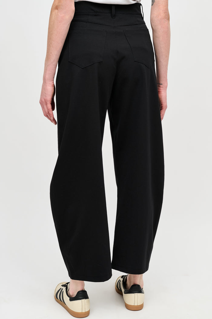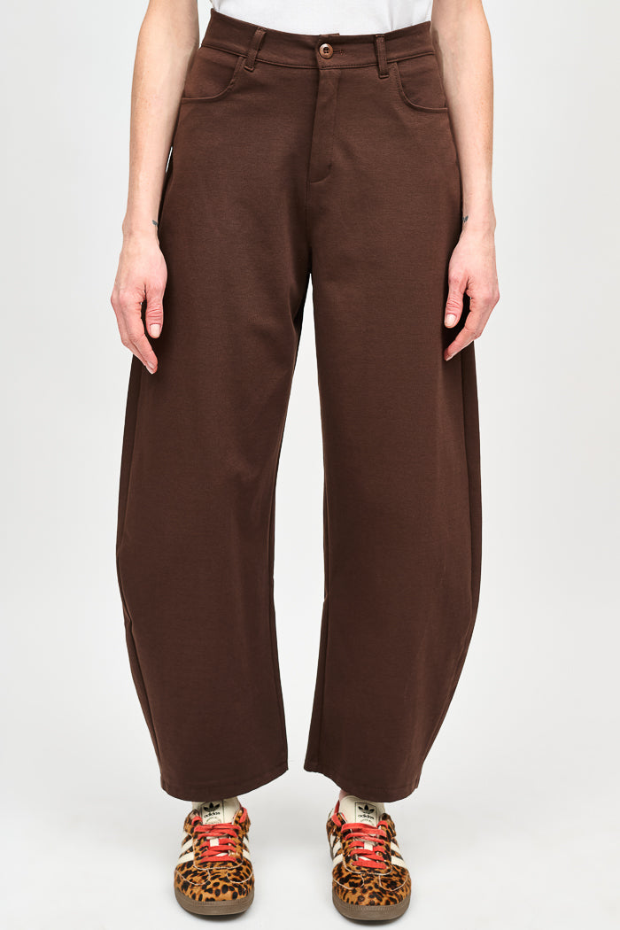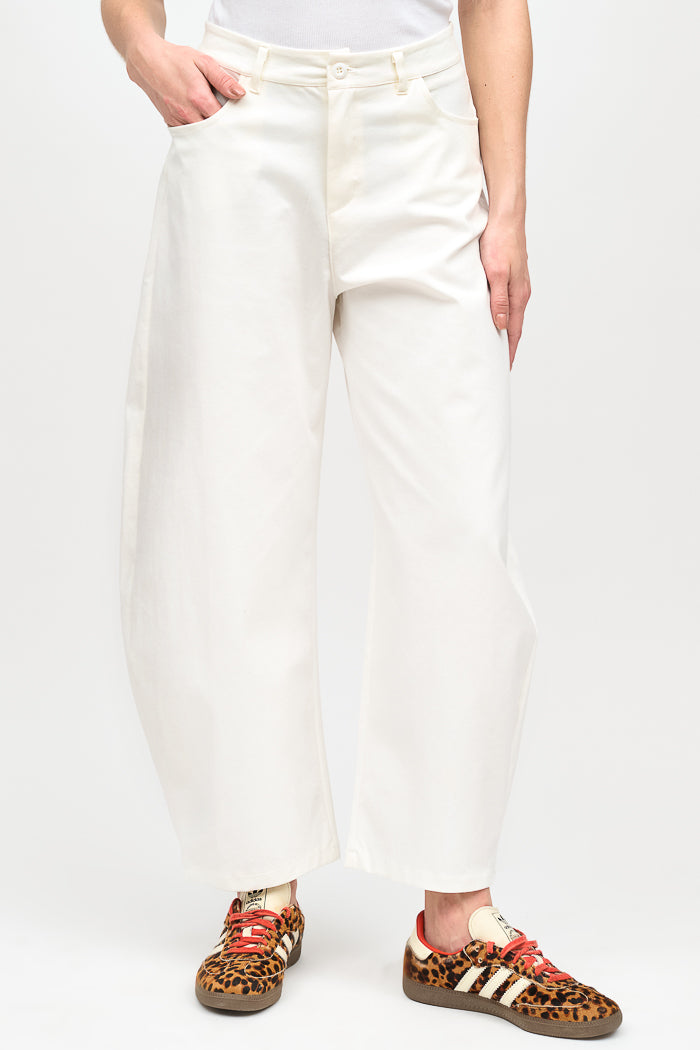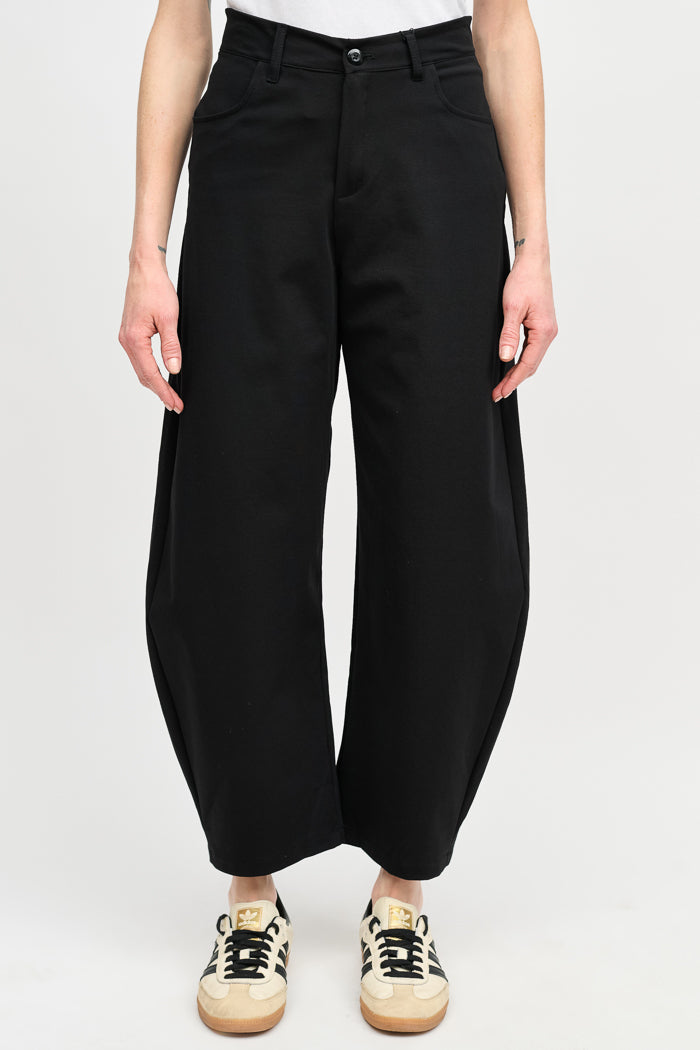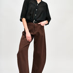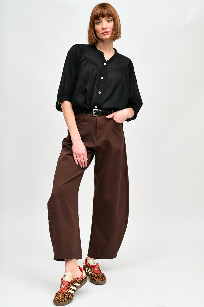 Pantalón balloon en algodón italiano, levemente elasticado, tiro alto, pierna ancha.