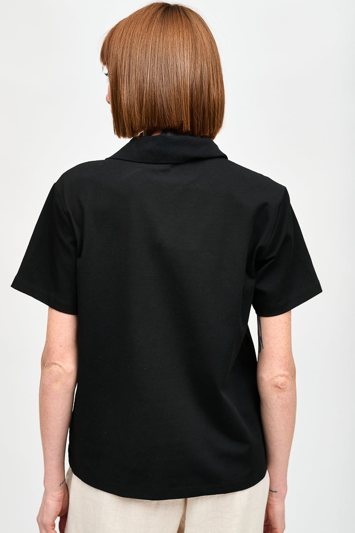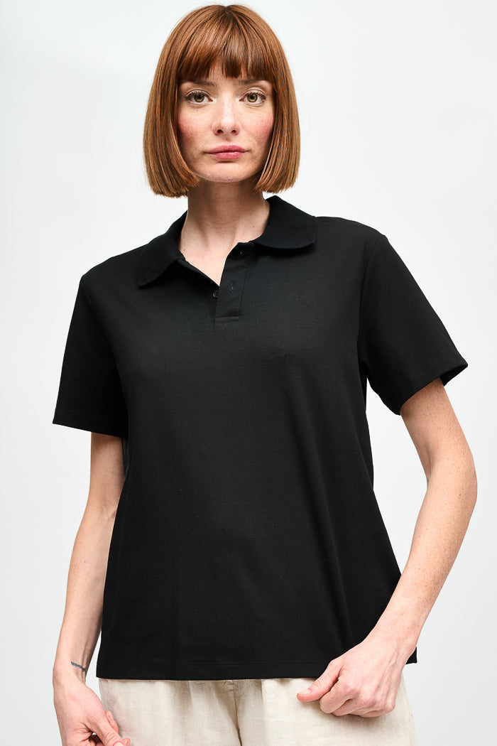 Polera con cuello camisero y manga corta.